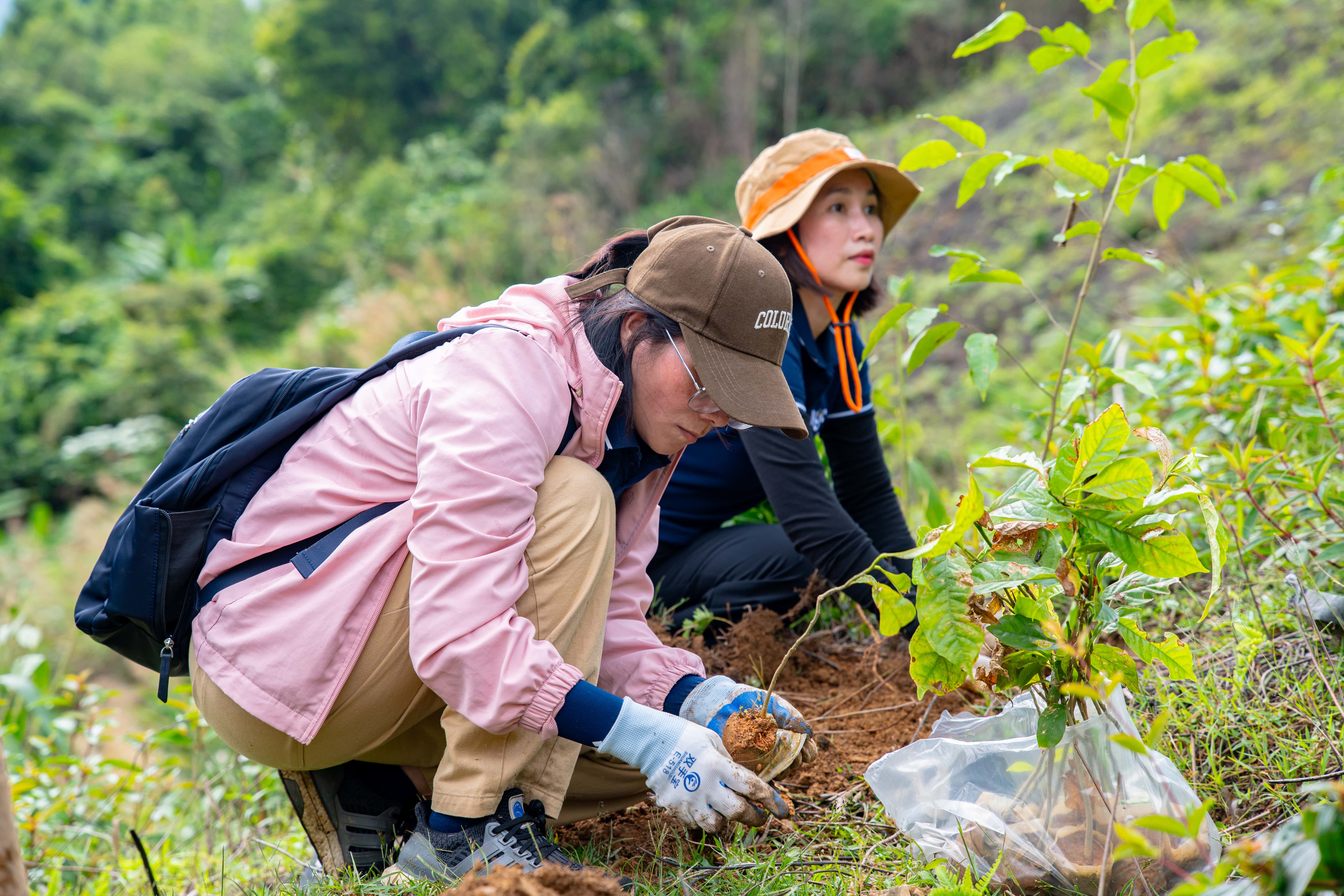 Niềm vui của Cô Quách Thị Hiền – giáo viên Trường Tiểu học Ban Mai (BMS Hà Nội) lần đầu tiên được đặt bầu cây xanh trong vườn quốc gia Tà Đùng – Tây Nguyên