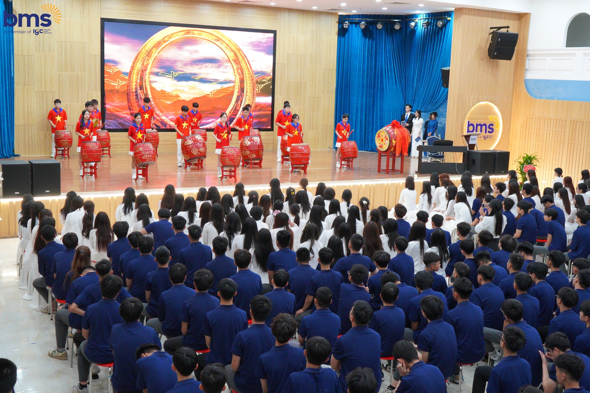 Lễ Khai giảng năm nay tại BMS được tổ chức trực tiếp và kết nối truyền hình trên VTV, lan tỏa khí thế chung của toàn ngành giáo dục. Trong giây phút trang nghiêm, Thầy cô và học sinh cùng lắng nghe lời căn dặn, chúc mừng năm học mới của Tổng Bí thư, hòa chung trong khoảnh khắc thiêng liêng khi tiếng trống khai trường ngân vang.