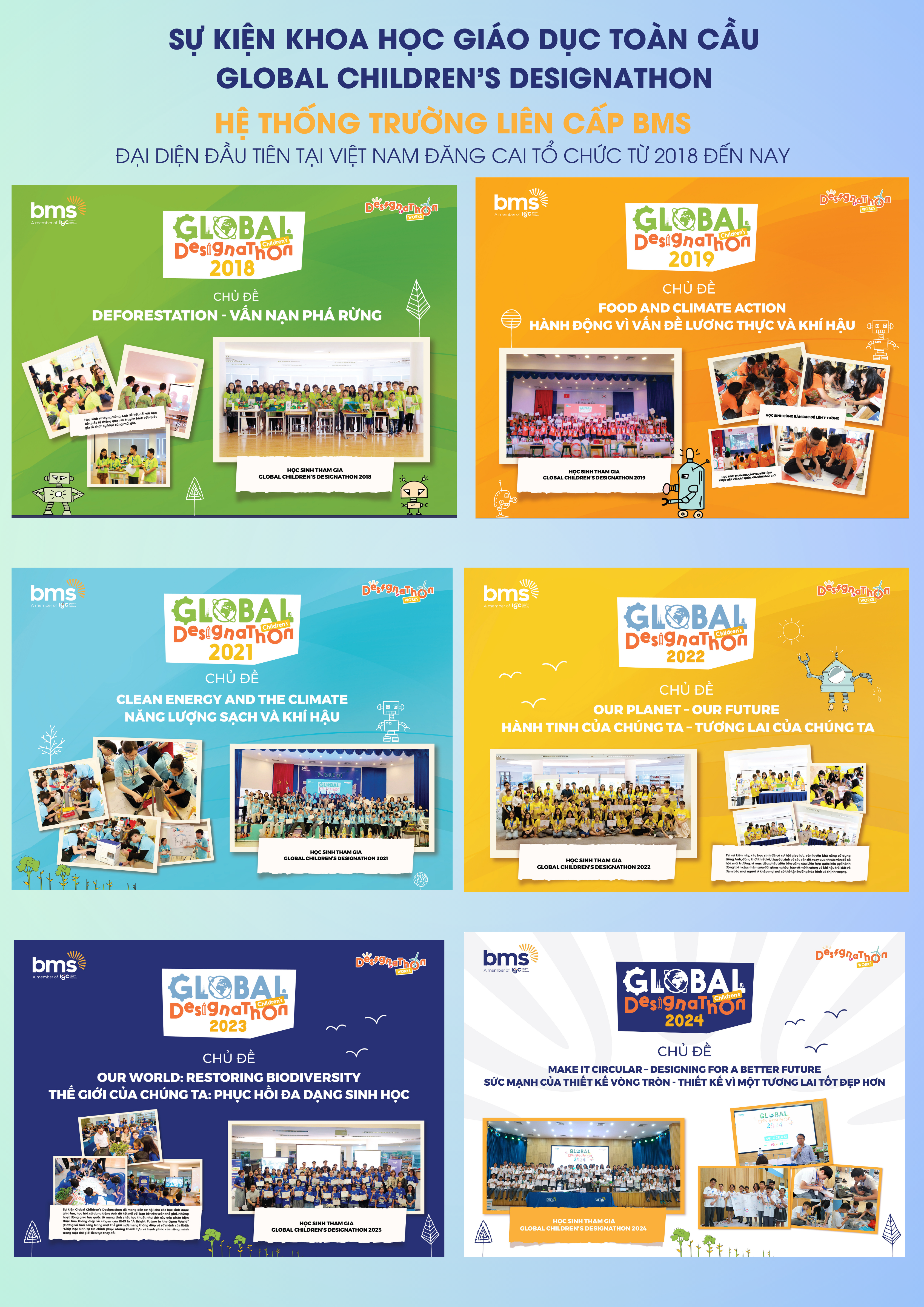 Tại Việt Nam, Hệ thống Trường liên cấp BMS vinh dự là đối tác được Global Children’s Designathon (GCD) đầu tiên được lựa chọn để tổ chức chương trình từ năm 2018 đến nay.