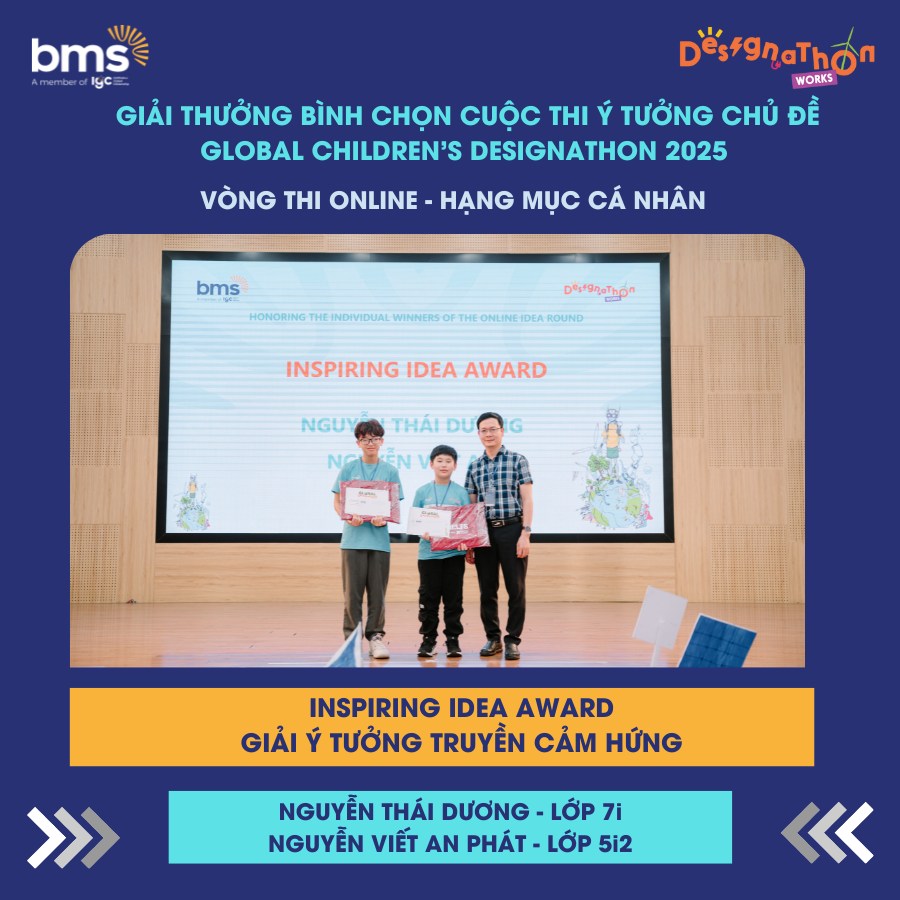 GIẢI Ý TƯỞNG TRUYỀN CẢM HỨNG – INSPIRING IDEA AWARD: Dành cho học sinh có ý tưởng mang giá trị truyền cảm hứng sâu sắc, thúc đẩy tinh thần hành động tích cực đến thế hệ trẻ và cộng đồng xung quanh.