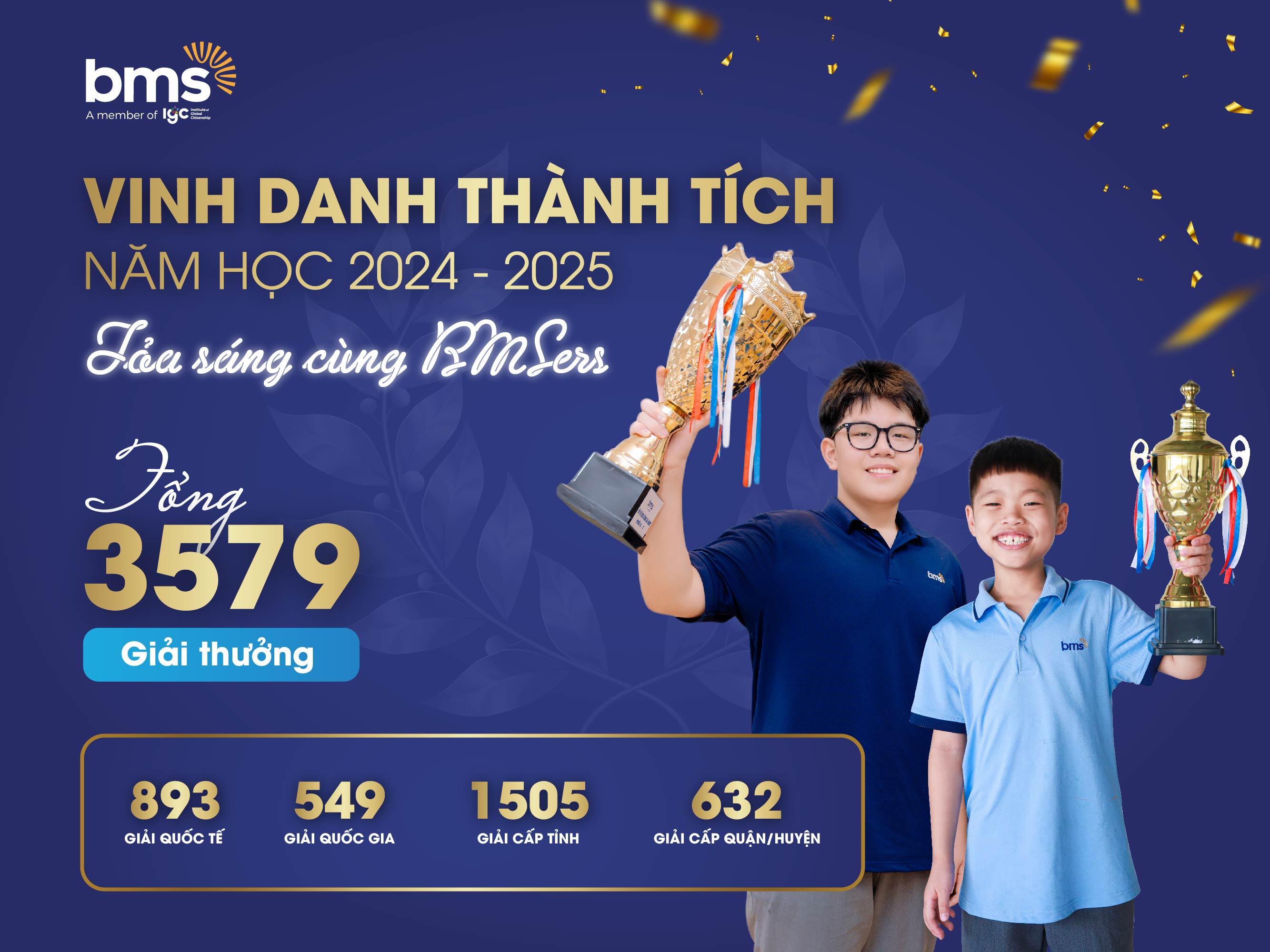 Năm học 2024–2025 khép lại với những dấu ấn rực rỡ của Hệ thống Trường liên cấp BMS – nơi hội tụ những học sinh bản lĩnh, không ngừng nỗ lực chinh phục tri thức và tỏa sáng trên các sân chơi trí tuệ trong nước và quốc tế.