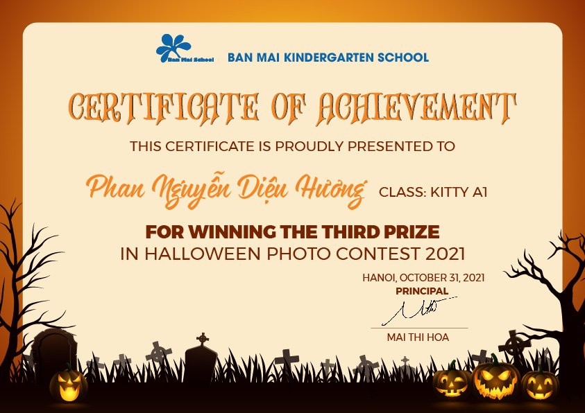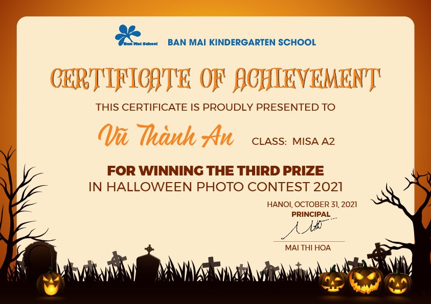 Một lần nữa, xin chúc mừng tất cả các con. Ban Mai cảm ơn sự đồng hành ý nghĩa của thầy cô và các cha mẹ, cùng tạo nên những thanh âm rộn ràng niềm vui trong một mùa Halloween giãn cách.