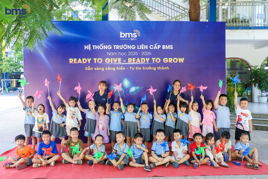 Năm học 2025 - 2026 tại BMS Kiddy khởi động với chủ đề “READY TO GIVE - READY TO GROW” - Sẵn sàng cống hiến – Tự tin trưởng thành hướng tới khơi dậy tinh thần sẻ chia, yêu thương và niềm tin để các con tự tin lớn lên từng ngày trong một môi trường tràn đầy gắn kết và tin yêu.