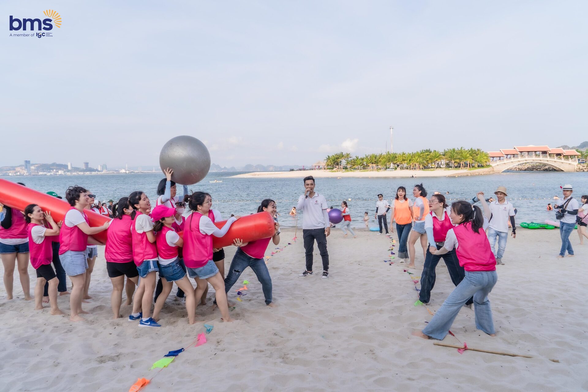 Với chủ đề “Together we make a breakthrough”, hàng loạt các trò chơi vận động đã diễn ra trên bãi biển Tuần Châu xinh đẹp. Tinh thần đoàn kết được thể hiện rõ nhất tại phần Teambuilding với những thử thách khó nhằn về cả thể lực và trí óc. Tại đây, các thành viên BMS đã thể hiện rõ nhiệt huyết, tinh thần đồng đội cùng nhau bứt phá mọi giới hạn.