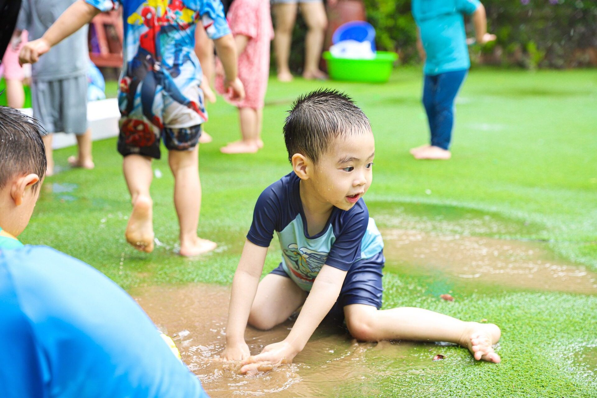 Các em bé Donald thì không khỏi “mê mệt” với trò chơi Vầy nước trong bể phao, Thổi bong bóng và Câu cá…