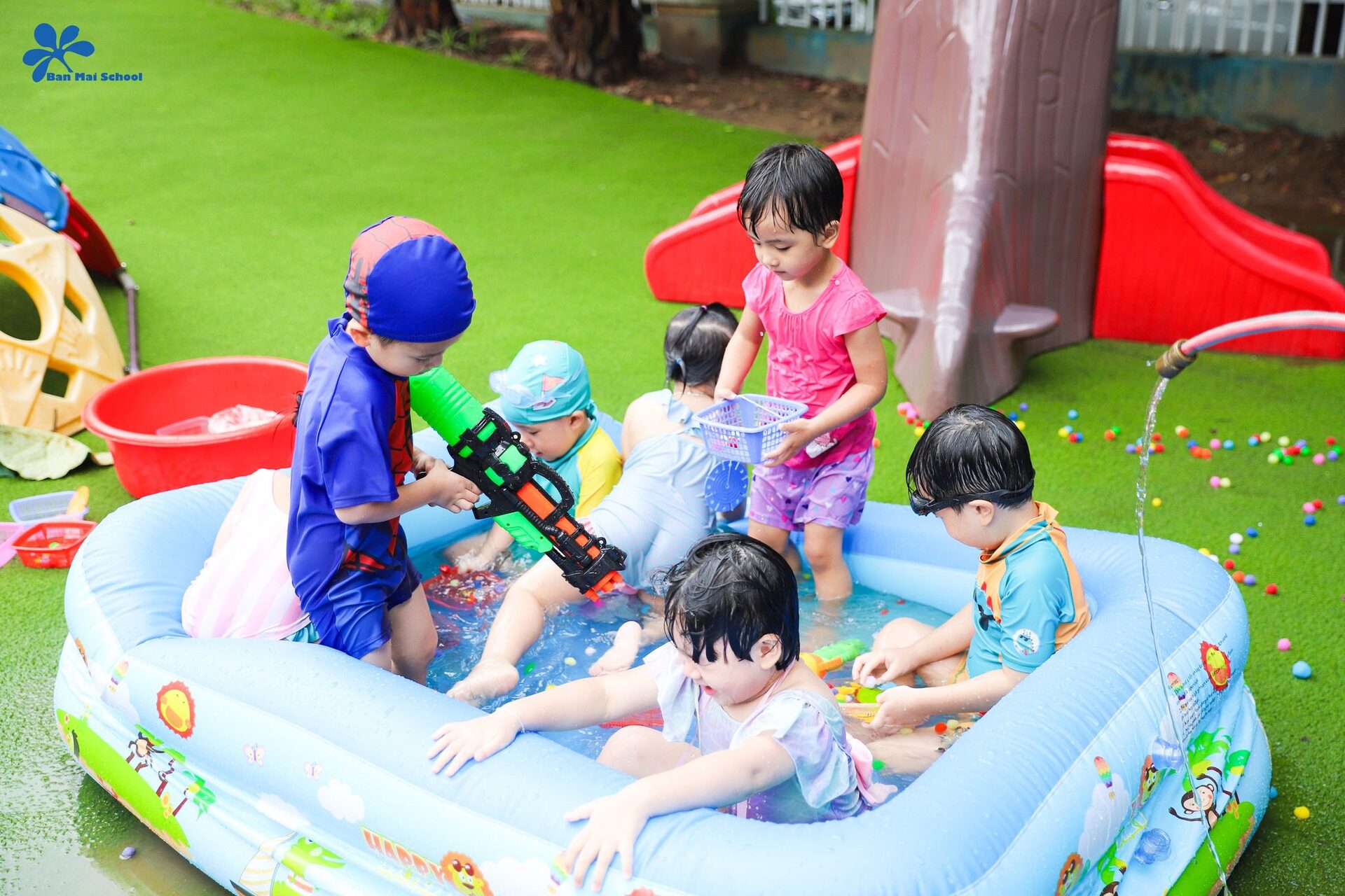 Wohooo! Sau một năm vắng mặt, Lễ hội nước đã trở lại trong sự háo hức tột độ của các BMSers. Được cha mẹ chuẩn bị những bộ đồ bơi, bikini rực rỡ sắc màu, ngay từ sáng sớm, các em bé hạnh phúc của Ban Mai đã không dấu được niềm hân hoan muốn ùa ngay vào “công viên nước” thu nhỏ.