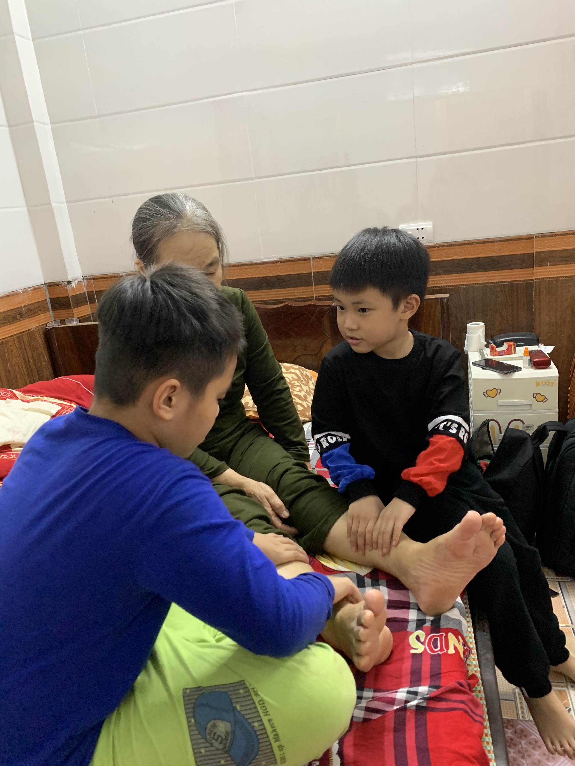Bạn Đại Dương lớp Misa 5 đang chăm sóc bà của mình