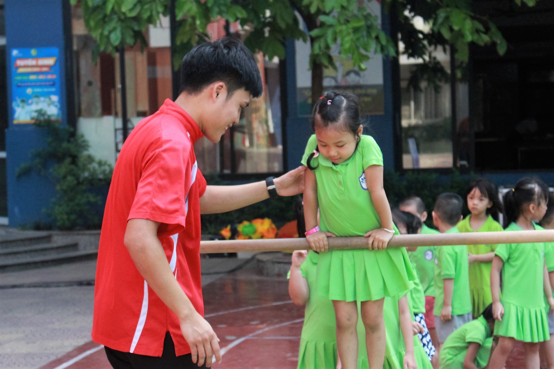 Điều đặc biệt giúp các bạn nhỏ hào hứng, thích thú là thông qua môn học Gymkid các con vừa được hoạt động vận động vừa được giao tiếp bằng tiếng anh với thầy cô.