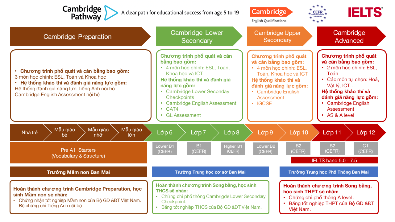 Lộ trình học tập dành cho hệ Cambridge tại Hệ thống giáo dục Ban Mai