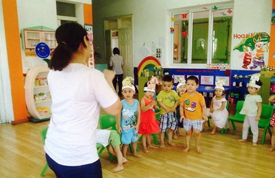 Đặc biệt mùa hè này các em được dành riêng hẳn một chương trình đó là làm quen với những bài hát thú vị về các chủ đề: chào hỏi, các con vật ngộ nghĩnh và các hoạt động quen thuộc trên lớp. Cùng với sự chuẩn bị vô cùng chu đáo về đồ dùng dạy học cũng như phương pháp, các cô giáo Tiếng Anh đã thu hút các em ngay từ những bài học đầu tiên.