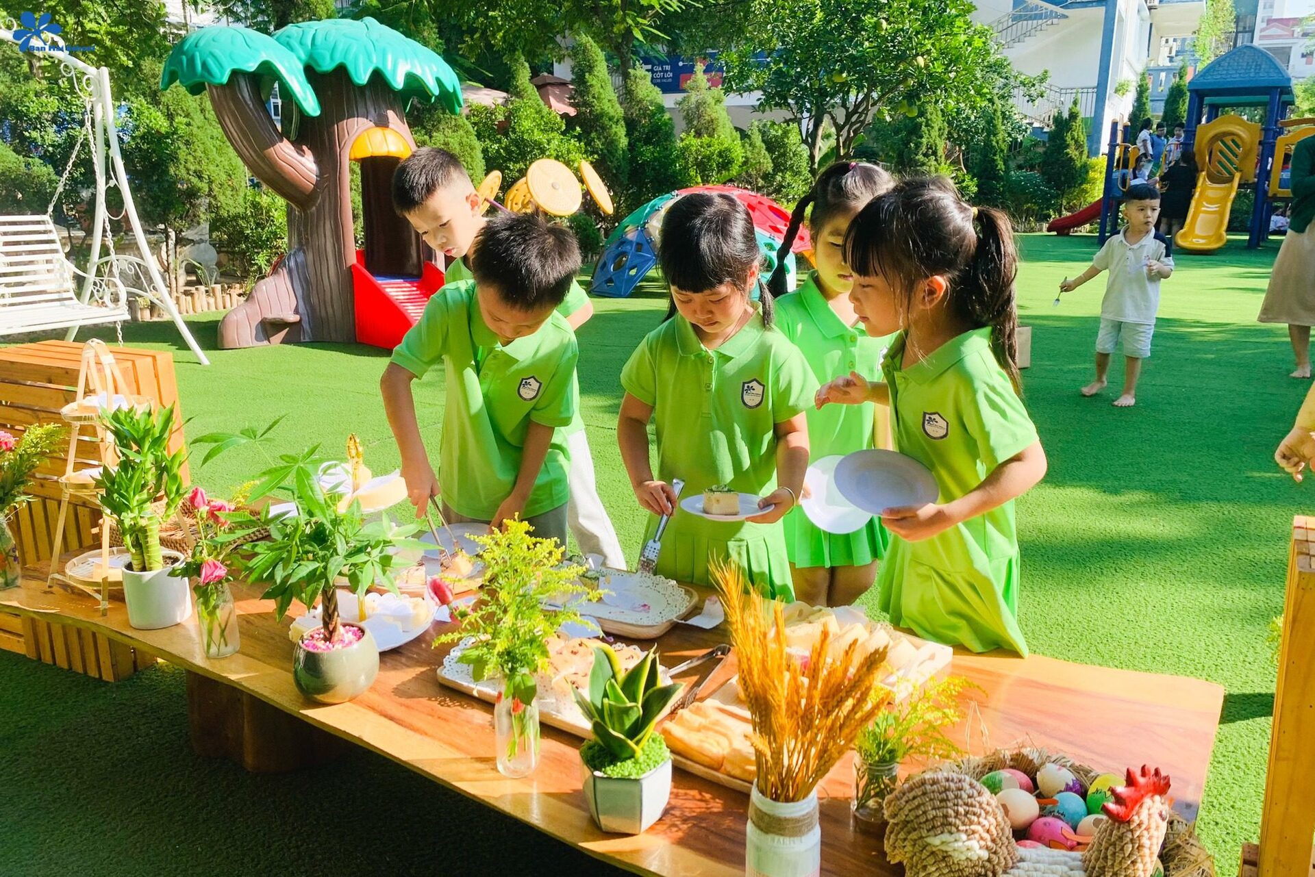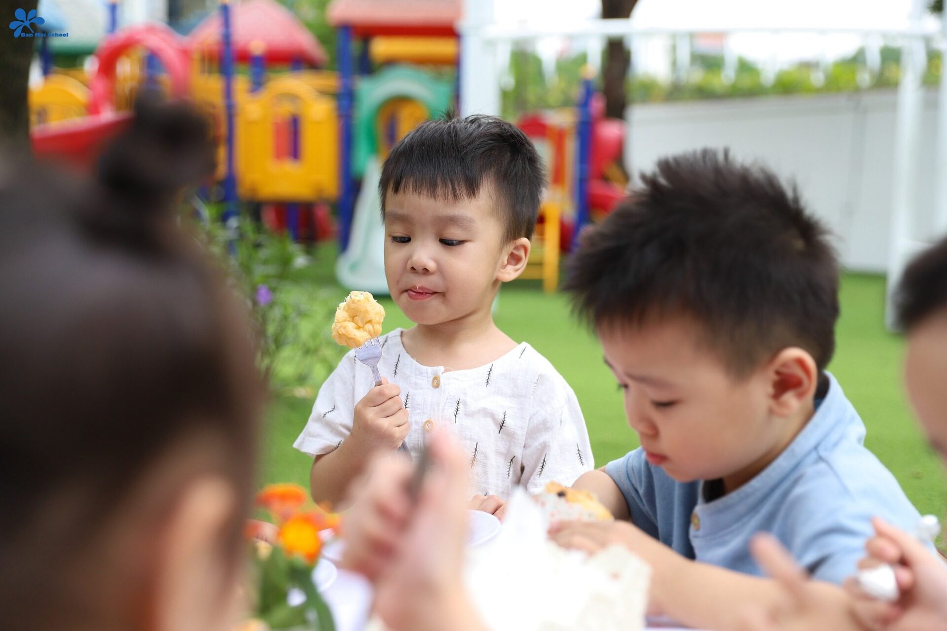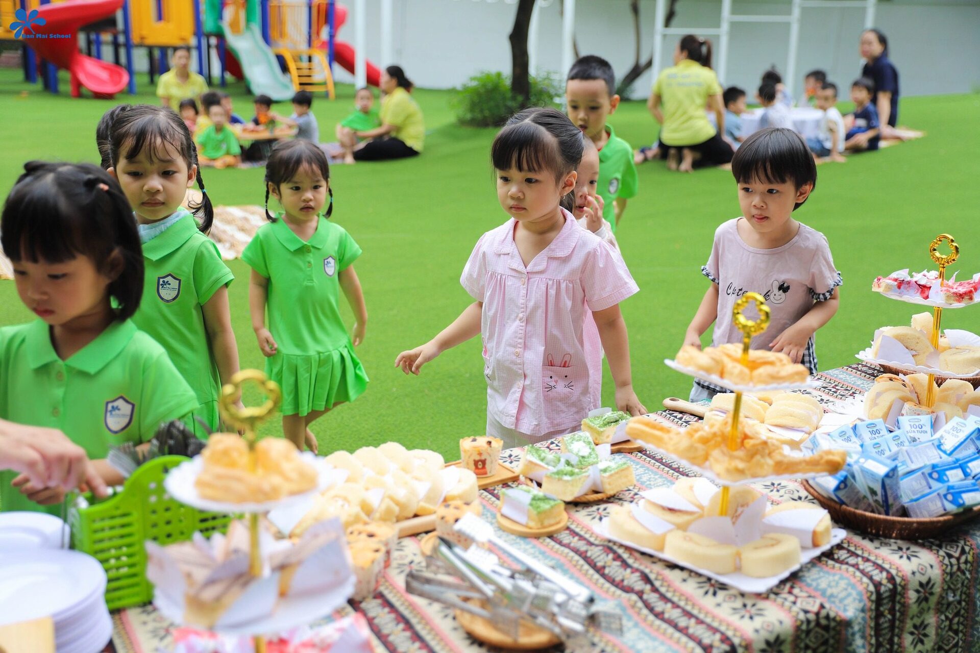 Lấy cảm hứng từ văn hóa trà chiều châu Âu, những bữa tiệc bánh mang phong cách “chill & free” đang dần trở thành nét đặc trưng trong hoạt động chăm sóc – nuôi dưỡng của trường Mầm non Ban Mai.