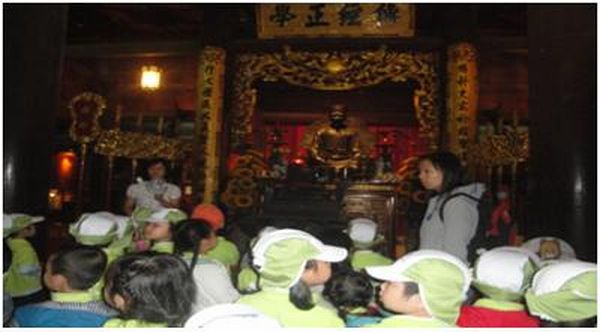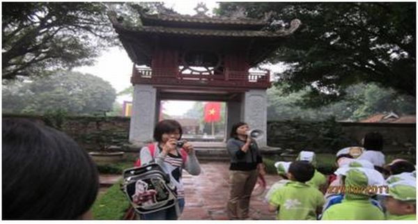 Sau đó các bạn được giới thiệu vềnơi giảng dạy của Quốc Tử Giám. Thực chất chỉ là một dãy nhà được xây lại sau khi Quốc Tử Giám bị hủy hoại do chiến tranh, nhưng các ban cũng tìm hiểu thêm một điều: Quốc Tử Giám được coi là trường Đại học đầu tiên của Việt Nam, và thầy hiệu trưởng đầu tiên chính là thầy Chu Văn An, người thầy tài giỏi, mẫu mực trong lịch sử.