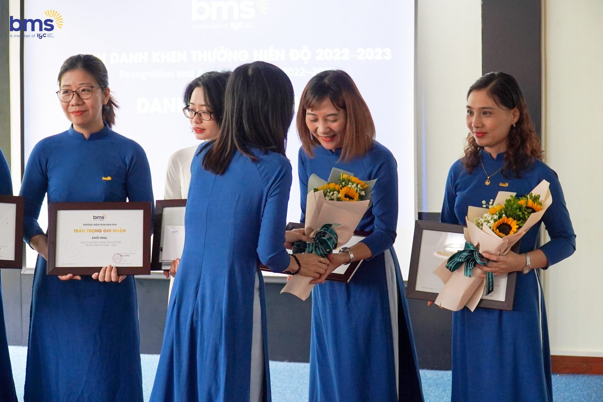 Năm học 2022 – 2023 đánh dấu chặng đường mới với những thay đổi quan trọng của Hệ thống Giáo dục Ban Mai. Cùng thiết lập mục tiêu, kế hoạch hành động với sự nỗ lực của tập thể CBGVNV, trường Mầm non Ban Mai đã về đích thắng lợi, hoàn thành các chỉ tiêu, nhiệm vụ được giao. Ghi nhận những nỗ lực ấy, tại sự kiện, BMS đã vinh danh các tập thể và cá nhân đạt thành tích xuất sắc trong niên độ và có nhiều cống hiến to lớn với Nhà trường.