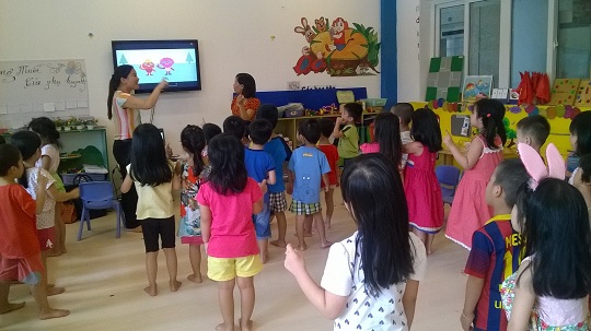 Chỉ sau ba buổi học được Ms Trang và Ms Mỹ hướng dẫn thông qua những hình ảnh sinh động, những trò chơi tương tác như Matching game, Jumping game và trò chơi được thiết kế trên Powerpoint như Word game, các bé đã có thể kể tên những vật dụng trong nhà mà bé đã được học và còn có thể kể chính xác được vật dụng đó nằm trong phòng nào trong ngôi nhà của bé nữa đó. Nhiều bé còn giơ tay thật cao xung phong lên bảng để xếp các vật dụng đó vào các phòng giống như trong nhà của bé để nhận được thật nhiều stickers thật đẹp để về khoe với ba mẹ.