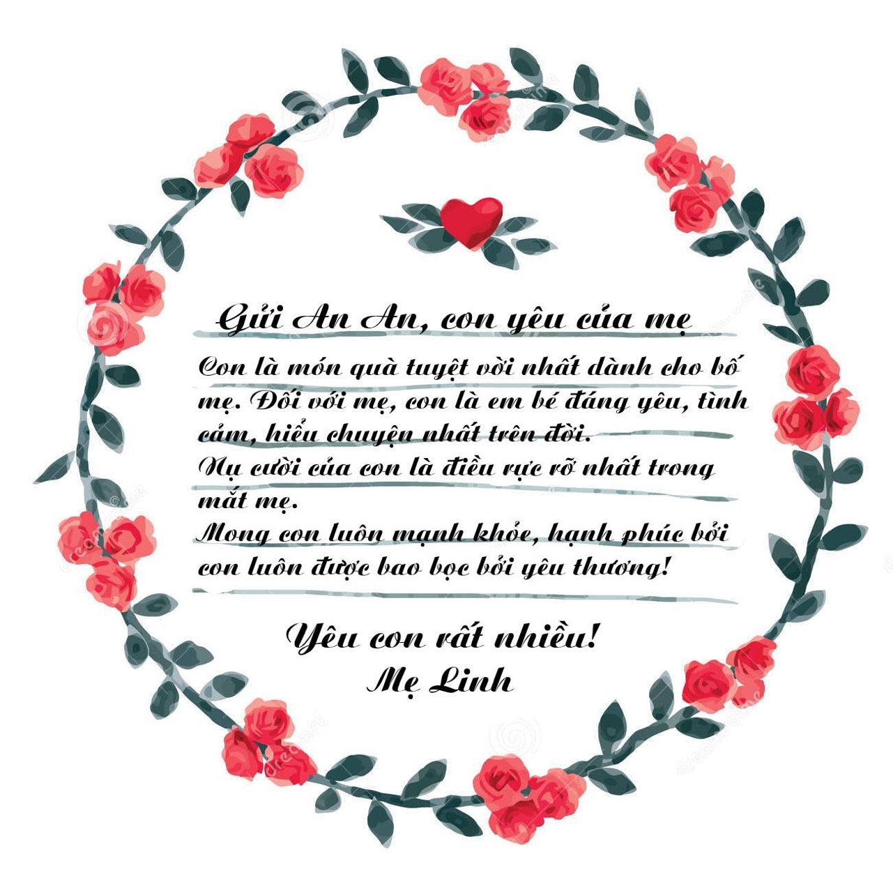 Vậy là suzy bé nhỏ của mẹ, 4 tháng trôi qua, cô con gái nhỏ của mẹ đã dần dần trở thành một người chị chăm lo cho em từ việc giúp mẹ dỗ em, giúp mẹ massage cho em, thay đồ cho em, chơi cùng em. Rồi nhiều lúc mẹ mệt, con cũng ra động viên, đấm lưng cho mẹ. Đó là những điều mà mẹ cảm thấy hạnh phúc biết bao nhiêu. Suzy à, Mẹ không mong gì ngoài việc con và em luôn khoẻ mạnh, bình an. Mong chị cả của mẹ ngoài tình yêu của bố mẹ, còn có thêm tình yêu của thầy cô và các bạn để tuổi thơ của con là những ngày vui vẻ, tuyệt vời nhất. Yêu con gái suzy của mẹ nhiều, nhiều!!!