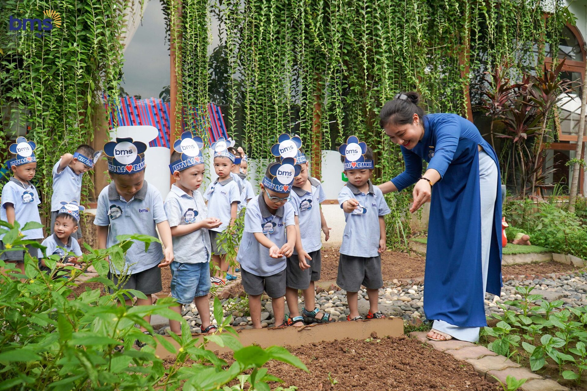 Đặc biệt vào ngày khai giảng, các con được cùng nhau “Trồng cây xanh – gieo mầm hạnh phúc” để chào đón một năm học mới với thật nhiều niềm vui, thành tựu và hạnh phúc. Các bạn nhỏ được cùng nhau chăm sóc những cây xanh, gieo hạt giống yêu thương, cảm nhận niềm vui và hạnh phúc khi mầm cây lớn lên từng ngày.