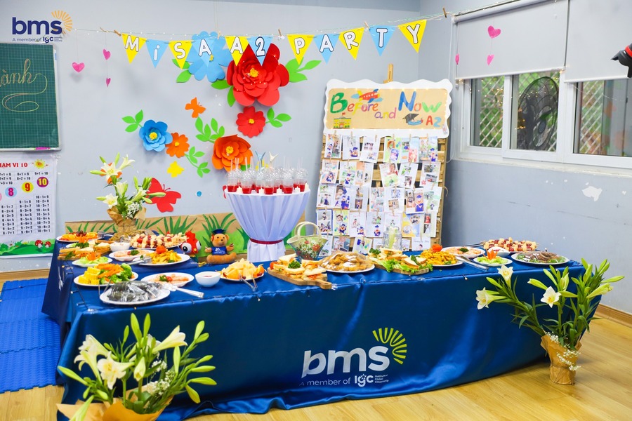 Khép lại ngày hội là bữa tiệc buffet ngập tràn màu sắc – nơi từng món ăn, từng chi tiết trang trí đều được cha mẹ và thầy cô chuẩn bị với tất cả yêu thương. Bữa tiệc không chỉ là dịp để các con thưởng thức ẩm thực, mà còn là không gian chan chứa tình cảm, sự kết nối và niềm vui trọn vẹn.
