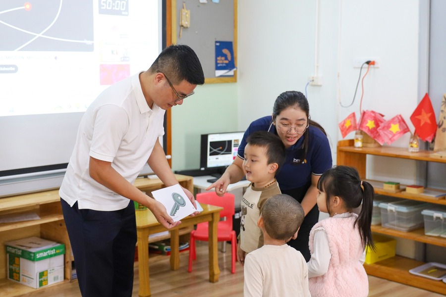 Ngay từ sáng sớm, khi những tia nắng đầu đông len lỏi qua ô cửa sổ tại BMS không khí nhà trường đã rộn ràng hơn thường lệ, mở đầu cho một ngày trải nghiệm đầy hứng khởi của cha mẹ trong vai trò giáo viên mầm non. Các “cô giáo mẹ”, “ thầy giáo cha” đã có mặt từ sớm để đón các con trong ánh mắt trìu mền. Khoảnh khắc lần đầu được đứng dưới cương vị của cô giáo, cha mẹ không chỉ hồi hộp, bồi hồi mà trong ánh mắt còn ánh lên tình yêu thương và trìu mền bất tận.