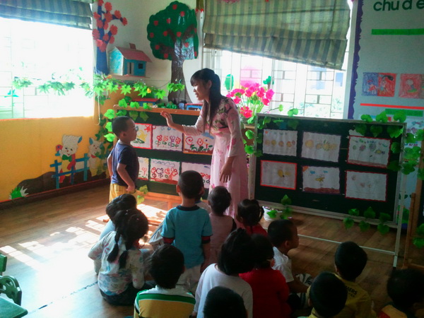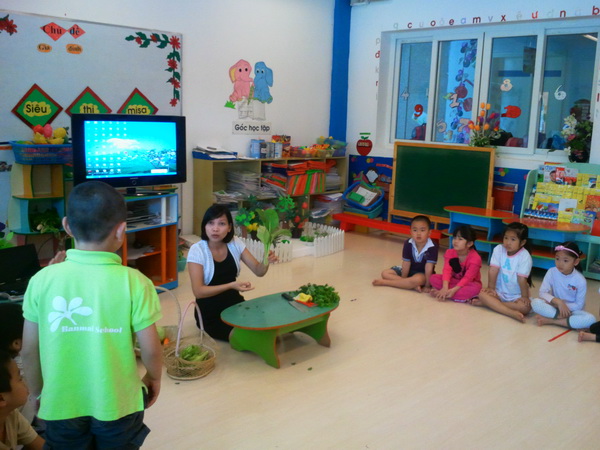 Với phương trâm lấy trẻ làm trung tâm, cô giáo chỉ là người định hướng cho trẻ tiếp cận với các kiến thức một cách chủ động và tích cực như hoạt động khám phá khoa học của cô giáo Nguyễn Thị Vân – lớp Misa 1 về các loại rau củ quả hoặc hoạt động khám phá các loại quả của cô giáo Đỗ Thị Thắm lớp Mickey 4