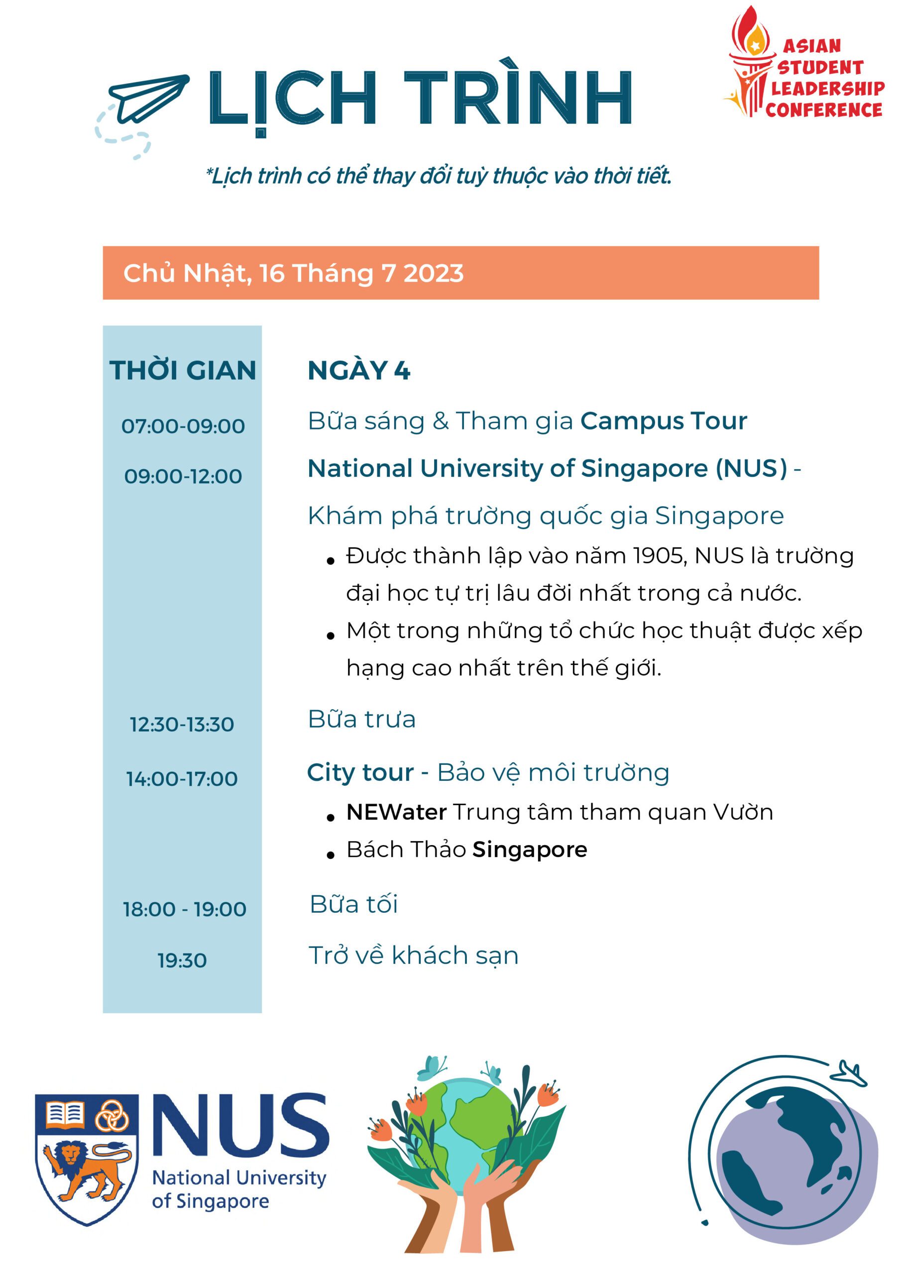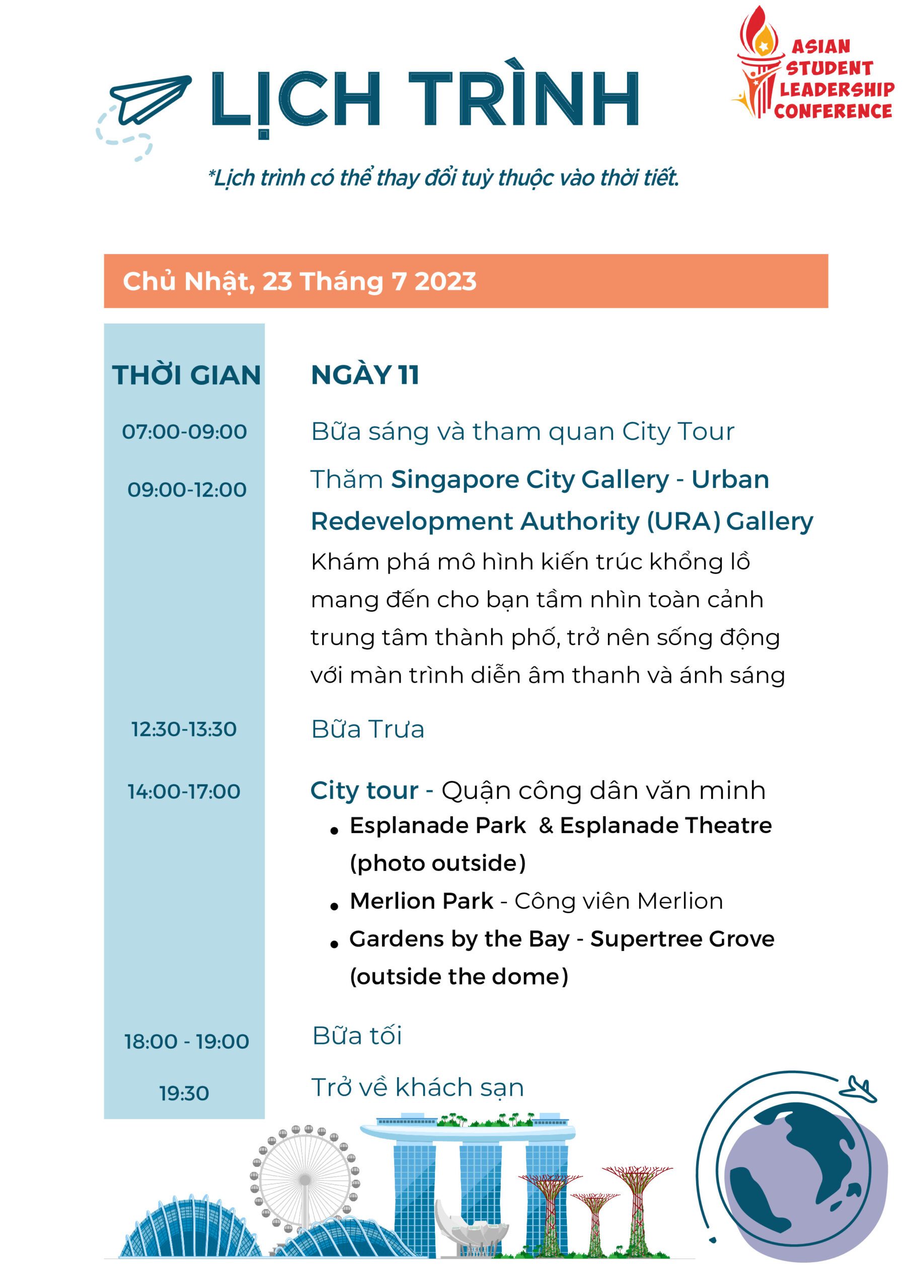 LỊCH TRÌNH TRẠI HÈ LÃNH ĐẠO TRẺ CHÂU Á ASLC