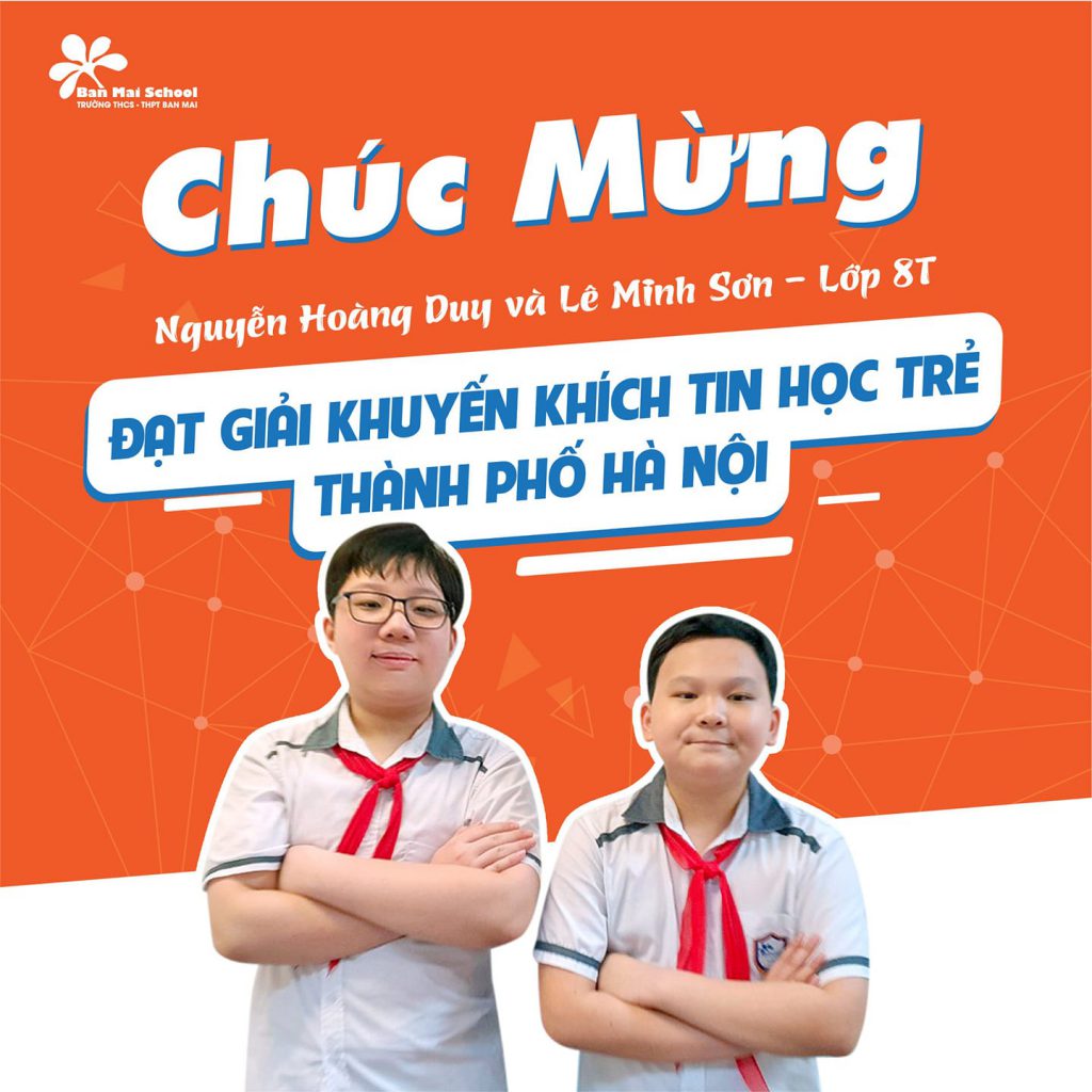 Chúc mừng thành tích của các học sinh Hoàng Duy và Minh Sơn 8T!