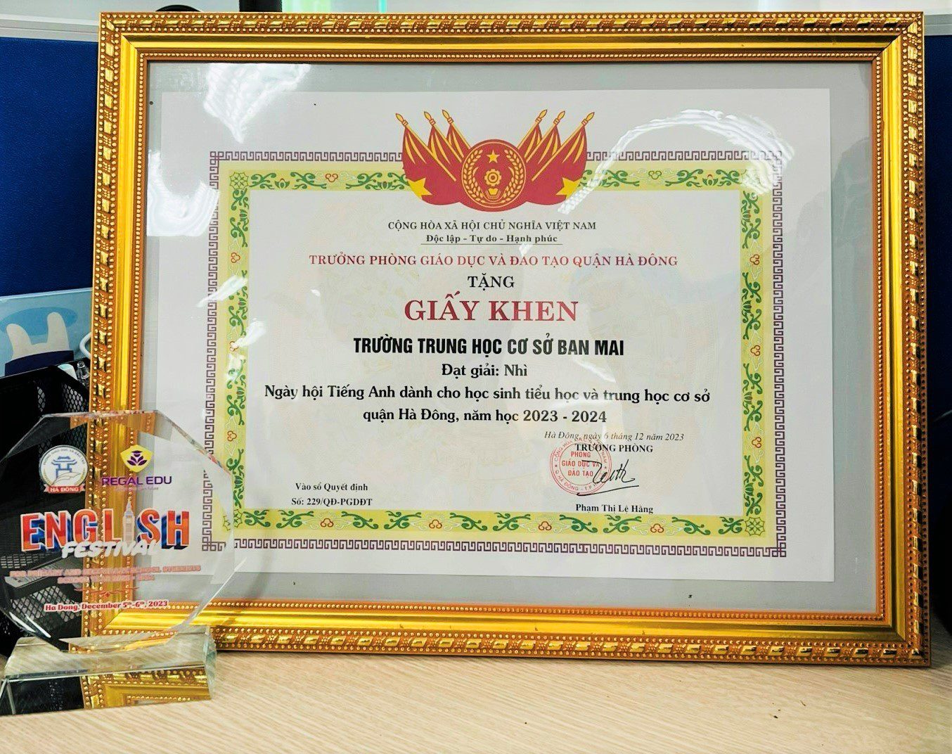 Giải Nhì cuộc thi FESTIVAL TIẾNG ANH là minh chứng cho tinh thần hợp lực, trí tuệ tập thể và thế mạnh sử dụng ngôn ngữ toàn cầu của BMSers Ban Mai. Xin chúc mừng thành công của Thầy và trò đội tuyển FESTIVAL TIẾNG ANH.