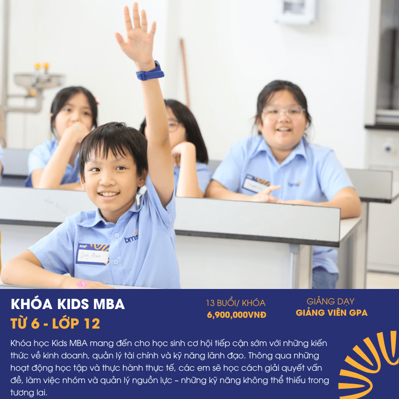 • Khóa Kids MBA: Trang bị cho học sinh những kiến thức cơ bản về kinh doanh, quản lý tài chính và phát triển kỹ năng lãnh đạo.