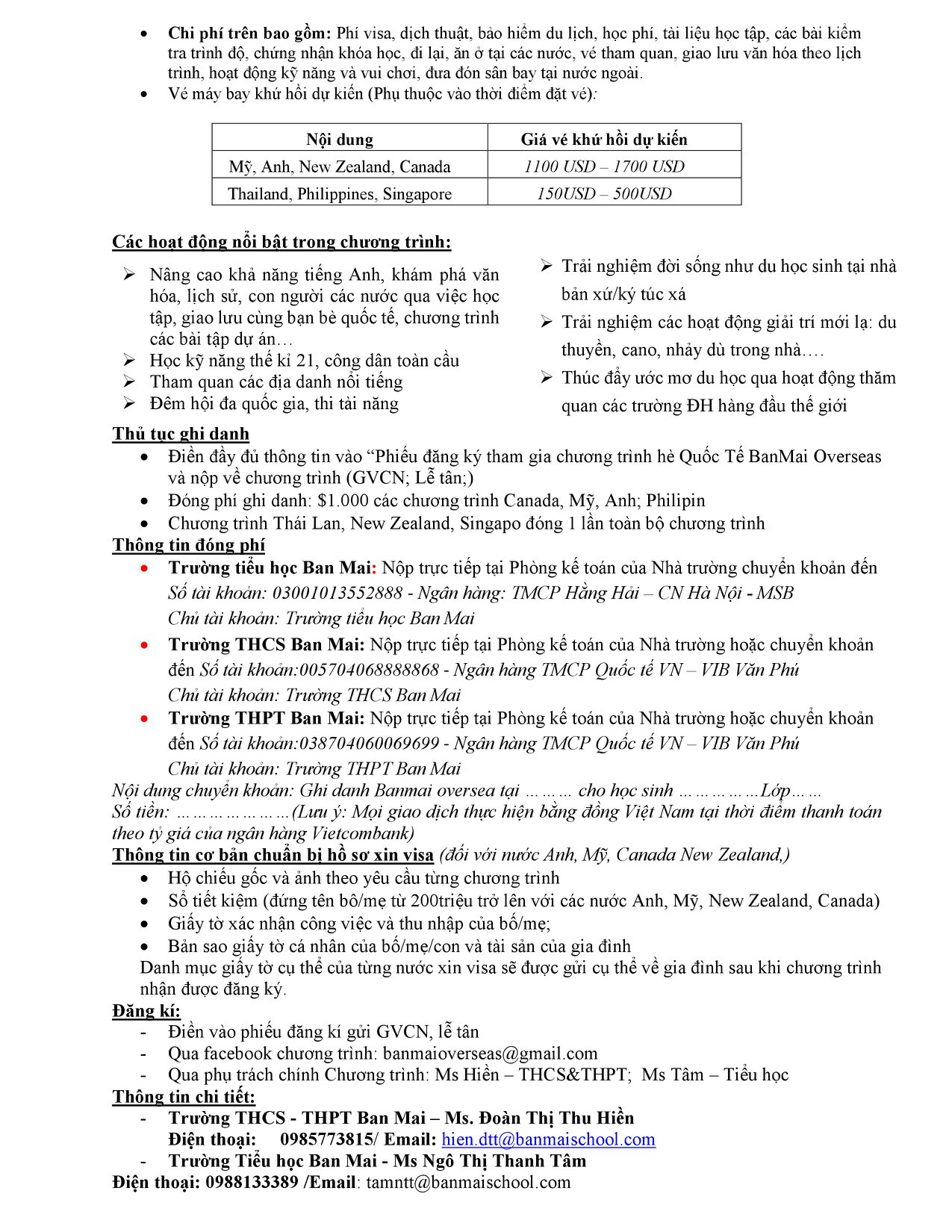 TỔNG QUAN CHƯƠNG TRÌNH TRẠI HÈ QUỐC TẾ – BAN MAI OVERSEAS 2019