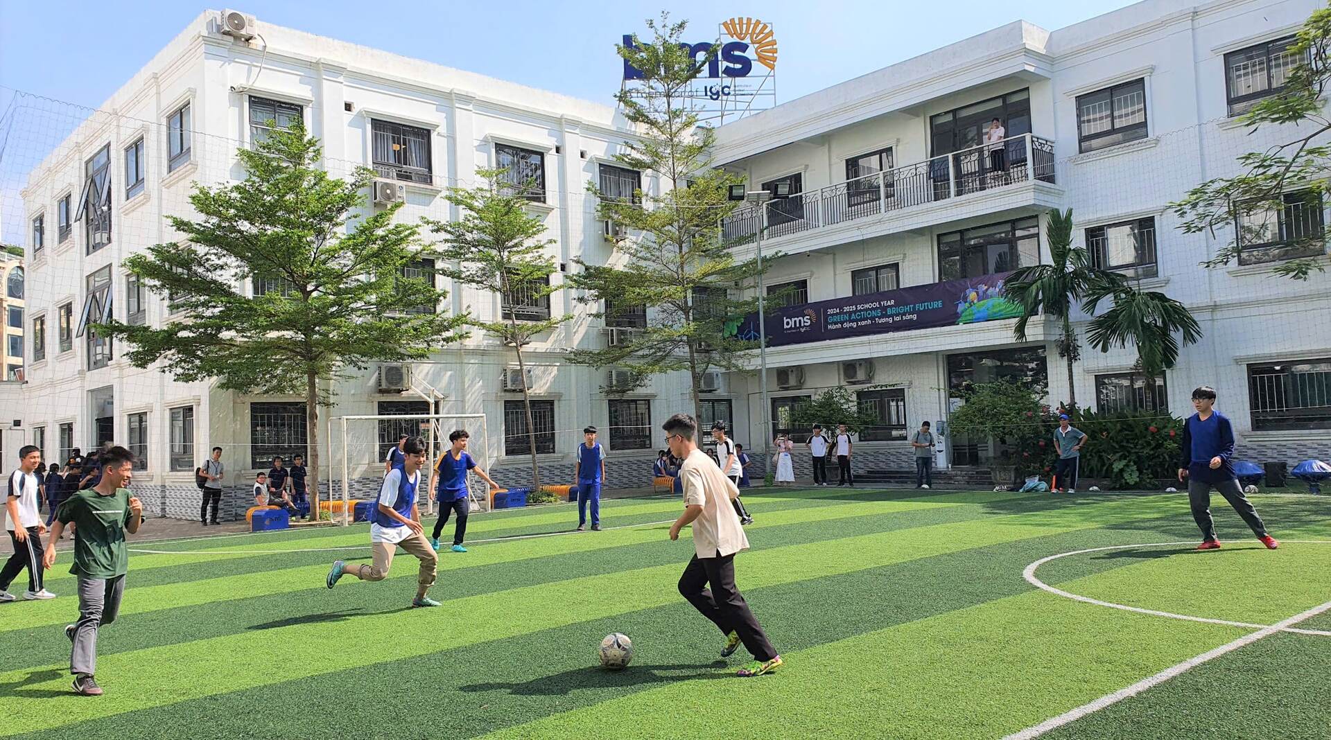 Hoạt động thể thao là cầu nối tuyệt vời cho học sinh hai trường kết nối và giao lưu văn hóa. Các trận bóng đá và bóng rổ giữa học sinh Chang Yi và BMS đã diễn ra trong bầu không khí nhiệt huyết và thân thiện, giúp các bạn học sinh rèn luyện sức khỏe và thắt chặt thêm tình bạn và tinh thần đoàn kết. Đặc biệt, lớp thể chất Be Warrior kết hợp giữa vận động và ngoại ngữ đã tạo nên bầu không khí hào hứng và đầy sáng tạo.