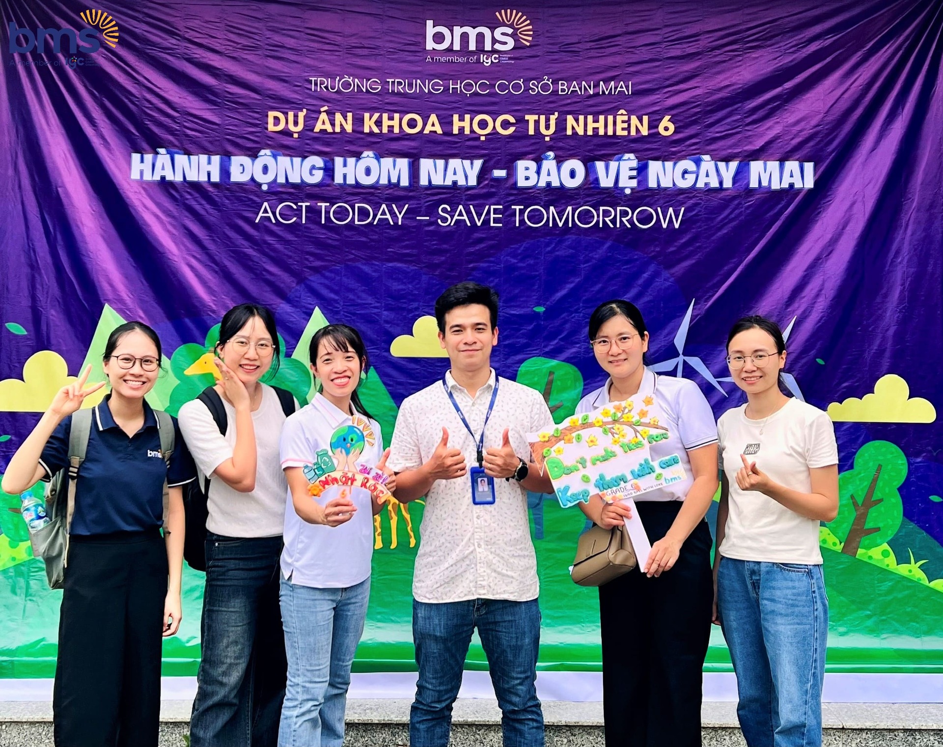 BMS lan tỏa chủ đề năm học 2024 - 2025 với tinh thần “Hành động xanh – Tương lai sáng”, hướng tới giáo dục ý thức bảo vệ thiên nhiên và xây dựng một tương lai bền vững. Chủ đề ý nghĩa này được lồng ghép vào dự án Khoa học Tự nhiên khối 6 mang tên “ACT TODAY – SAVE TOMORROW” – “Hành động hôm nay - bảo vệ ngày mai”