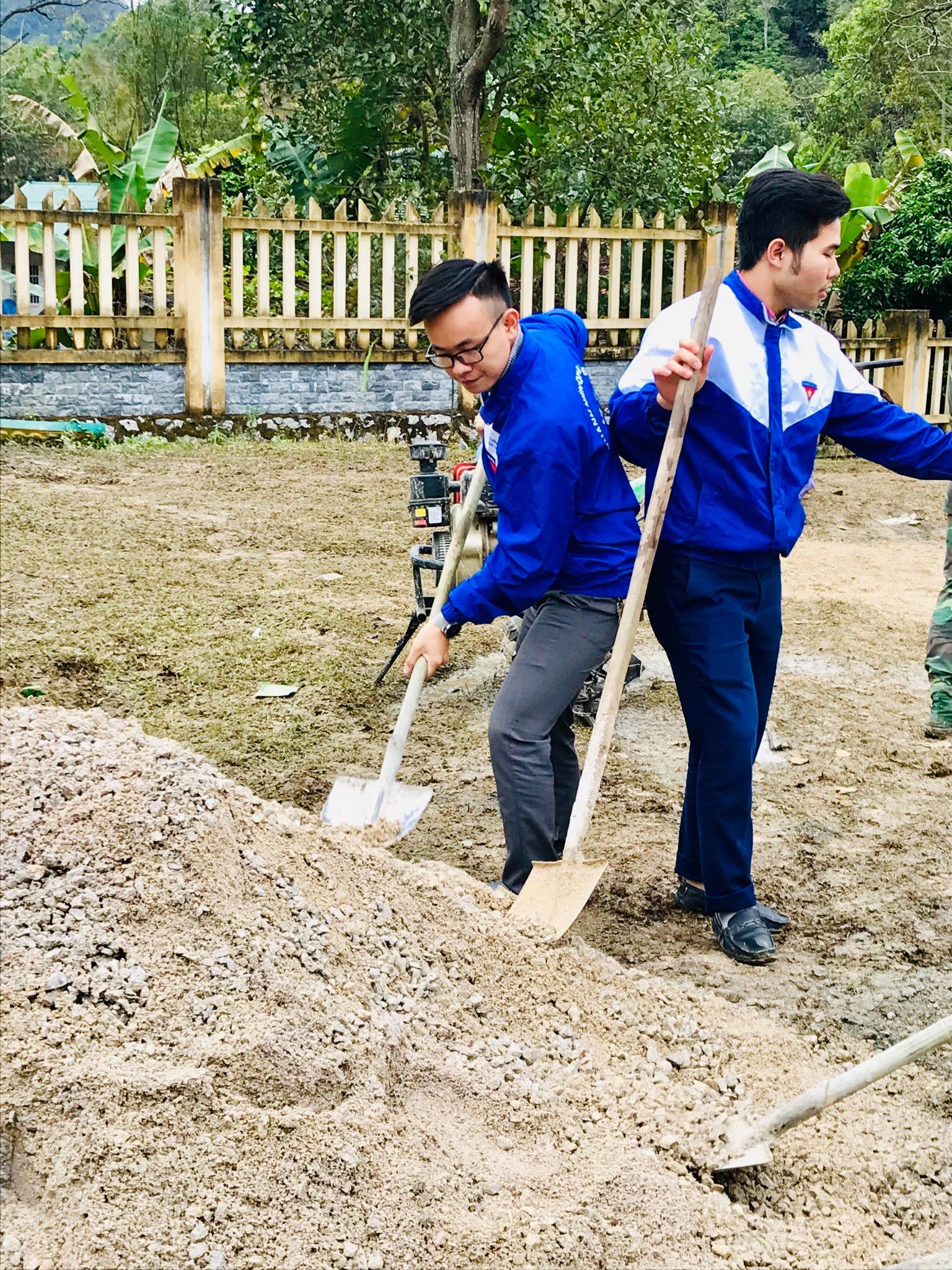 Thầy Nguyễn Ngọc Thiện (trái), Thầy Nguyễn Trạc Huy (phải) tham gia tích cực trong phong trào tình nguyện tại cơ sở Trong chuyến đi tình nguyện Đoàn TN 3 đơn vị đã tổ chức thăm hỏi tặng quà đến các hộ gia đình chính sách, gia đình có hoàn cảnh khó khăn và các em học sinh đặc biệt khó khăn tại các đơn vị nhà trường tại xã Việt Chu, xã Quang Long, huyện Hạ Lang, tỉnh Cao Bằng. Đoàn công tác đã tổ chức nhiều chương trình ý nghĩa, lan tỏa tinh thần sẻ chia đến cộng đồng như:-Tặng 80 phần quà tới các hộ gia đình chính sách, các hộ gia đình nghèo, các em học sinh có hoàn cảnh khó khăn;- Tổ chức khám phát thuốc miễn phí cho 50 ông bà bệnh đau xương khớp;- Tặng công trình sân chơi bê tông trị giá 30 triệu đồng cho đơn vị trường Tiểu Học Việt Chu;- Tặng 400 bộ dụng cụ học tập cho trường Tiểu Học Việt Chu;- Tặng 20 chăn ấm cho đơn vị trường Mầm Non Quang Long;- Tặng hỗ trợ 3 tr mua dụng cụ thể thao cho Đồn biên phòng Quang Long và quyên góp nhiều quần áo, đồ dùng thiết yếu khác ủng hộ bà con tại 2 đơn vị. Thăm hỏi động viên cán bộ, chiến sỹ đồn biên phòng Quang Long. Trong chuyến đi đoàn công tác đã tổ chức đêm giao lưu VHVN với cán bộ, chiến sĩ đồn biên phòng Quang Long thắm tình quân dân. Cùng xem lại một số hình ảnh ý nghĩa tại chương trình thiện nguyện: