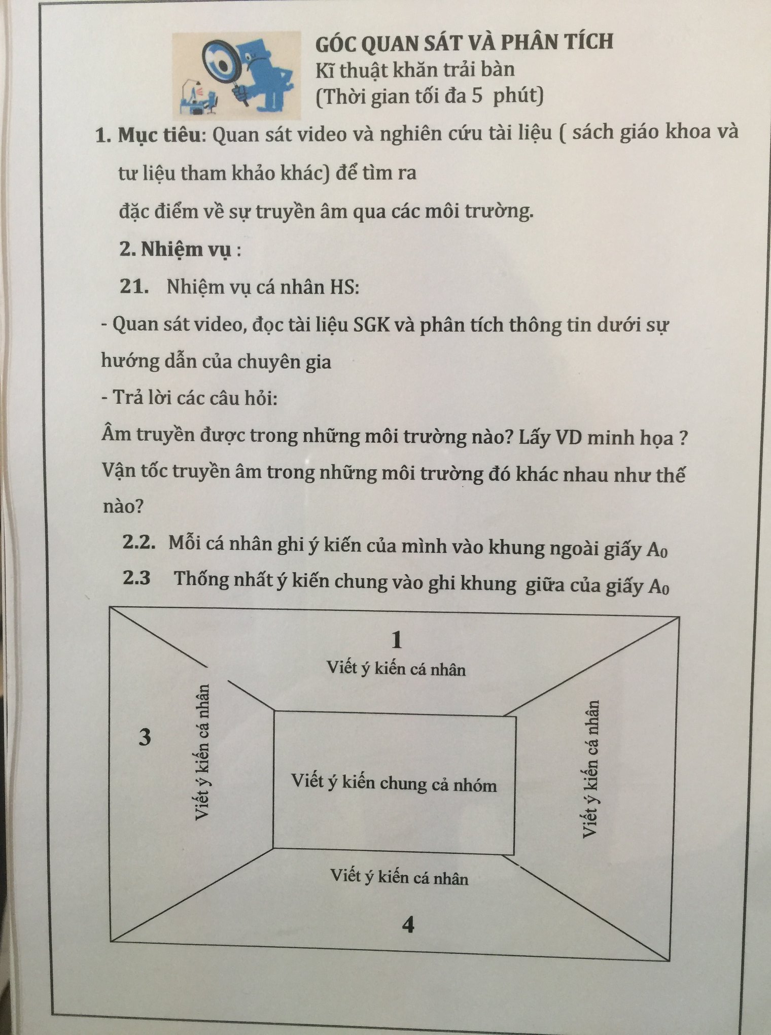 “Môi trường truyền âm”- Vật lý 7 là 1 bài học có nội dung rất phù hợp hợp cho việc tổ chức mô hình lớp học như vậy. Bên cạnh đó, kĩ thuật dạy học cũng có 1 vai trò vô cùng quan trọng để phát huy tối đa hiệu quả học tập của học sinh. Và trong bài học này, “kĩ thuật chuyên gia” đã khẳng định rất rõ điều đó. Chính những bạn học sinh có năng lực tốt đã trở thành chuyên gia hướng dẫn cho các bạn mình chinh phục kiến thức một cách vừa đơn giản, dễ hiểu nhưng vẫn đảm bảo yếu tố khoa học.