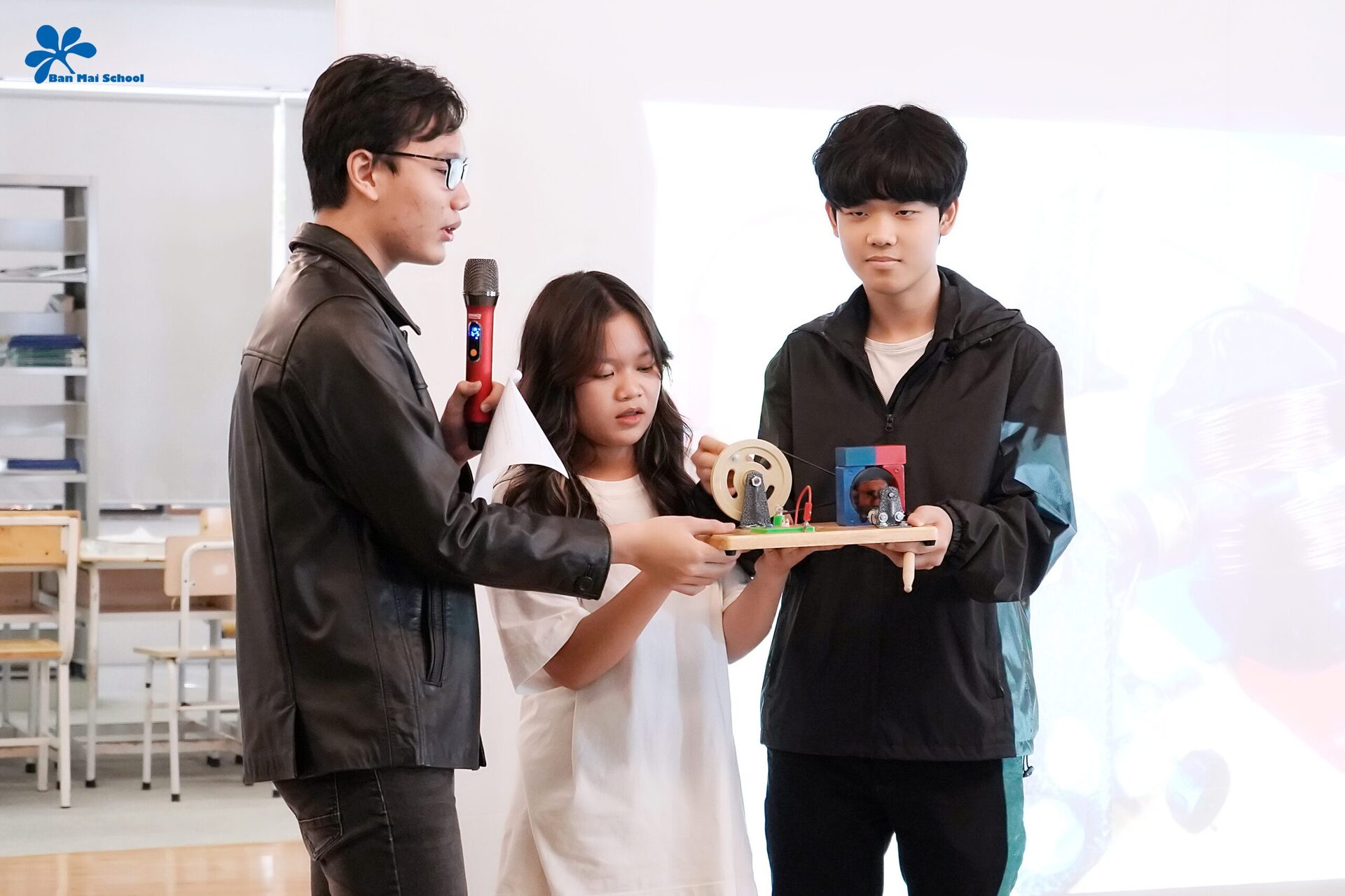 Khi tổ chức dự án cho học sinh khối 11 trường THPT Ban Mai, các thầy cô Tổ Tự nhiên đã thiết kế chủ đề theo hướng phát triển tối đa năng lực người học, phù hợp với sở thích và nhu cầu học tập của học sinh. Căn cứ trên thế mạnh của từng học sinh để lựa chọn tham gia vào một trong ba nhóm hoạt động dự án gồm: nhóm truyền thông, nhóm kĩ thuật và công nghệ, nhóm nghiên cứu.