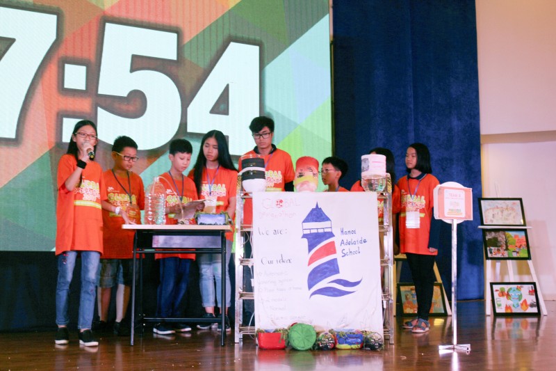 | Học sinh Trường Hanoi Adelaide với ý tưởng thiết kế hệ thống trồng rau sạch tại nhà với công cụ hỗ trợ là hệ thống tưới nước 2 tầng, có sử dụng cảm biến độ ẩm. |