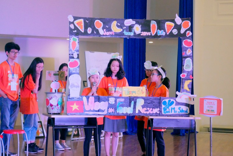 | Ý tưởng giải cứu đồ ăn thừa bằng cách thiết máy cảnh báo đồ ăn thừa, đánh thức ý thức tự giác của con người, sử dụng hình thức báo cáo bằng Vlog, kết hợp đa dạng với minh họa bằng hình ảnh “Thức ăn hạnh phúc” của học sinh Trường Ban Mai |