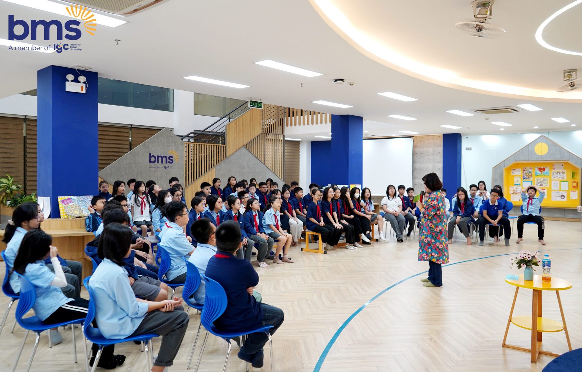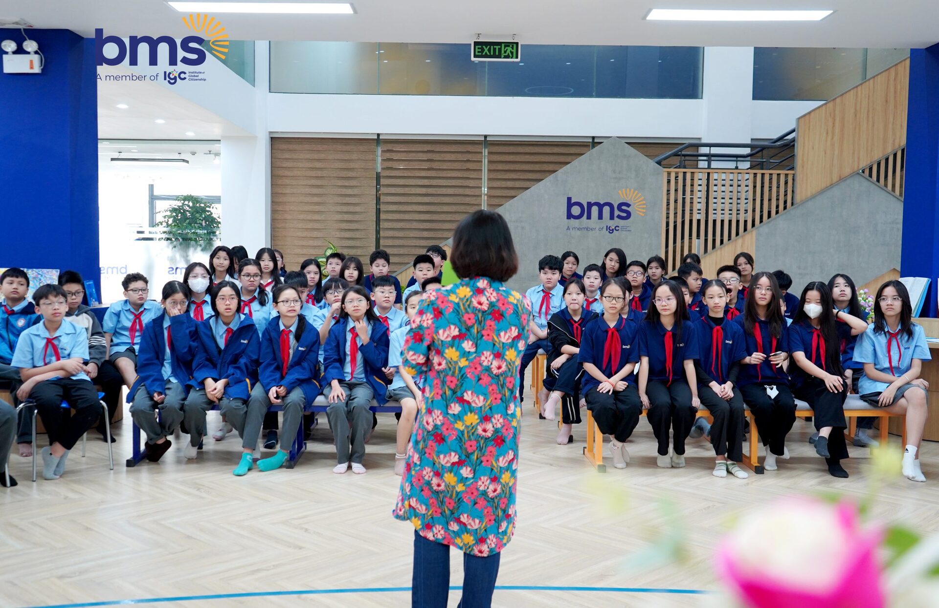 HỌC SINH BMS KÍCH THÍCH TƯ DUY SÁNG TẠO VÀ ĐẶT CÂU HỎI VỀ SÁCH CÙNG TÁC GIẢ – DIỄN GIẢ NGUYỄN THỤY ANH