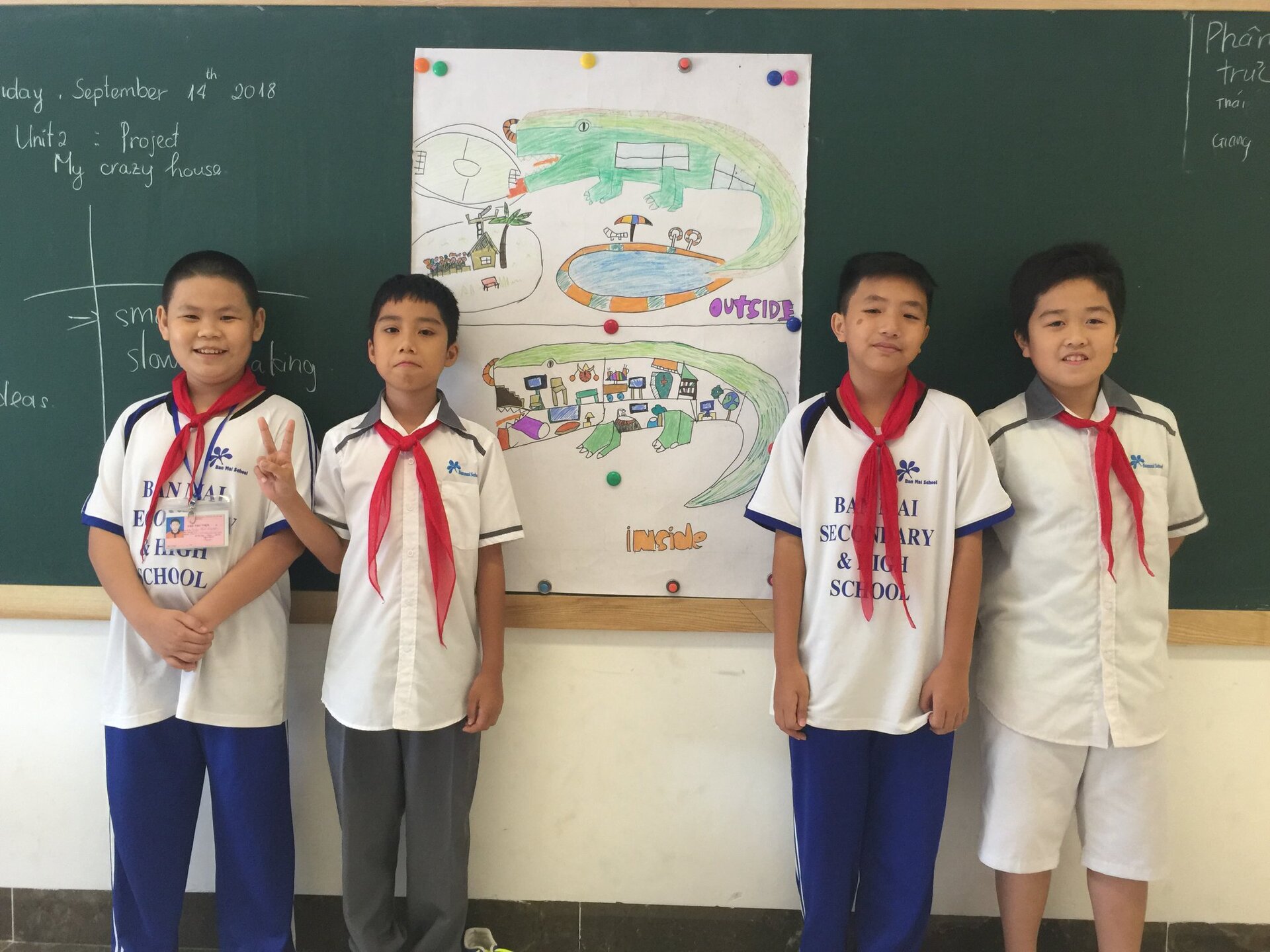 Với chủ đề:” MY CRAZY HOUSE” nhóm học sinh lớp 6M1dưới sự hướng dẫn của Cô giáo Phạm Anh Thư, đã tự tin thể hiện ý tưởng của những Kiến trúc sư tương lai, khi thiết kế mô hình ngôi nhà đặc biệt hình dạng Cá Sấu. Ngôi nhà này đầy đủ các tiện nghi như: Bể bơi, sân bóng, phòng khách, phòng ngủ, phòng vệ sinh.. được bố trí, sắp xếp hợp lý xung quanh diện tích của ngôi nhà.