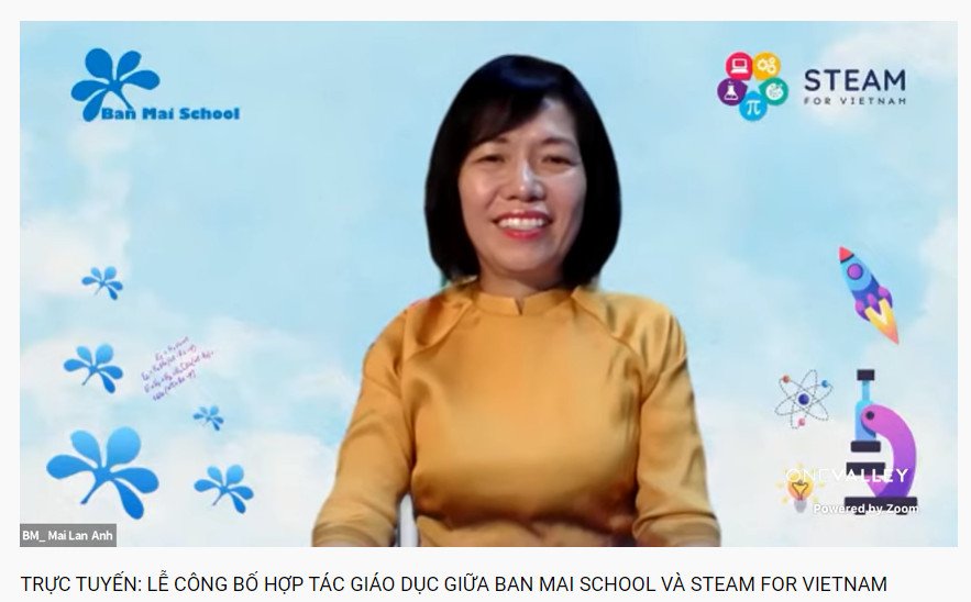 Việc hợp tác với Tổ chức STEAM for Vietnam là điểm gặp gỡ và hội tụ cùng sứ mệnh giáo dục nuôi dưỡng những thế hệ công dân toàn cầu của BMS. STEAM sẽ trở thành môn học chính khóa trong chương trình học tập của học sinh BMS. Vai trò của mỗi thầy cô là tiếp sức: Đánh thức- Nuôi dưỡng- Phát triển tài năng Khoa học trong tương lai, tạo ra những thế hệ mới có khả năng nghiên cứu và phát triển những sản phẩm khoa học sáng tạo ứng dụng vào cuộc sống” – Nhà giáo Mai Thị Lan Anh – Chủ tịch HĐQT Hệ thống giáo dục Ban Mai chia sẻ.