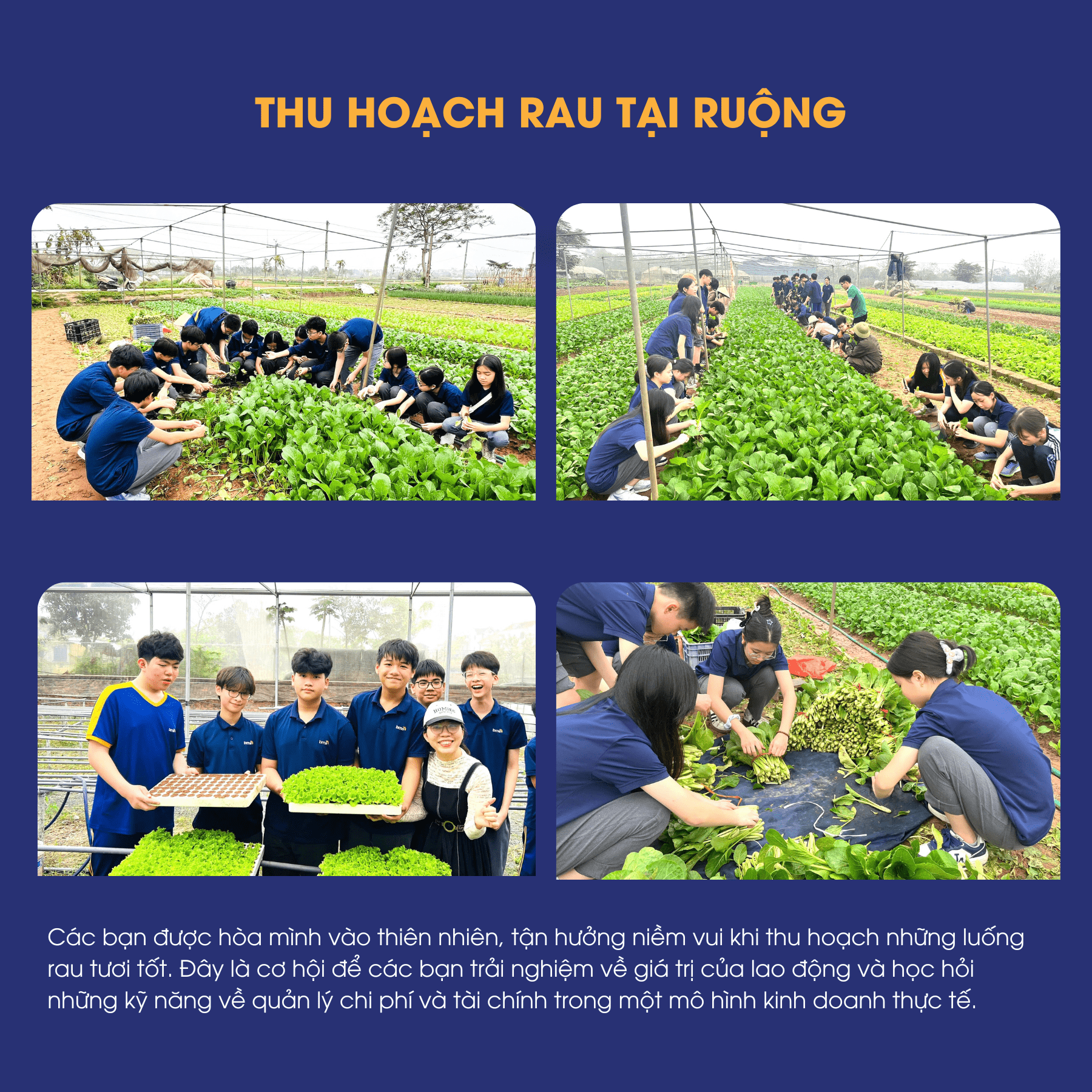 Qua chuyến trải nghiệm này, các học sinh hiểu rõ hơn về giá trị của lao động và nhận thức được tầm quan trọng của nông nghiệp sạch trong nền kinh tế bền vững, đồng thời có những góc nhìn mới mẻ về định hướng nghề nghiệp trong tương lai. Học sinh khối 8 cũng có cơ hội phát triển các kỹ năng 4C (Critical thinking, Creativity, Communication, Collaboration) – những kỹ năng thiết yếu trong môi trường nghề nghiệp hiện đại.