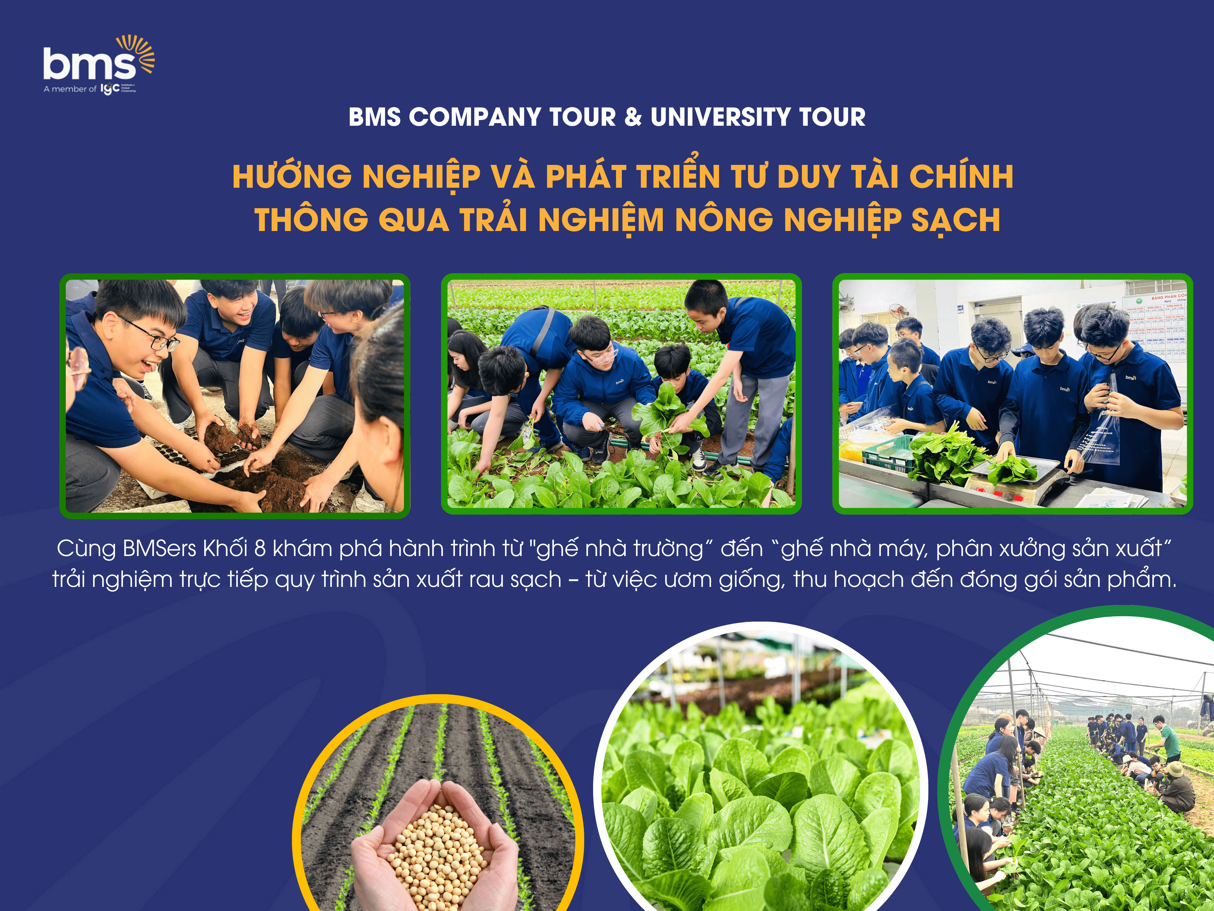 Năm học 2025 - 2026 của BMS với chủ đề "Hành động xanh - Tương lai sáng" hướng tới các hoạt động thiết thực, hướng tới việc giáo dục học sinh về những giá trị bền vững. Chương trình trải nghiệm hướng nghiệp tại Hợp tác xã rau quả sạch Chúc Sơn là một trong những hoạt động nổi bật, giúp học sinh có cái nhìn thực tế về quy trình sản xuất nông nghiệp sạch, đồng thời hướng tới một lối sống tiêu dùng xanh và bảo vệ môi trường.