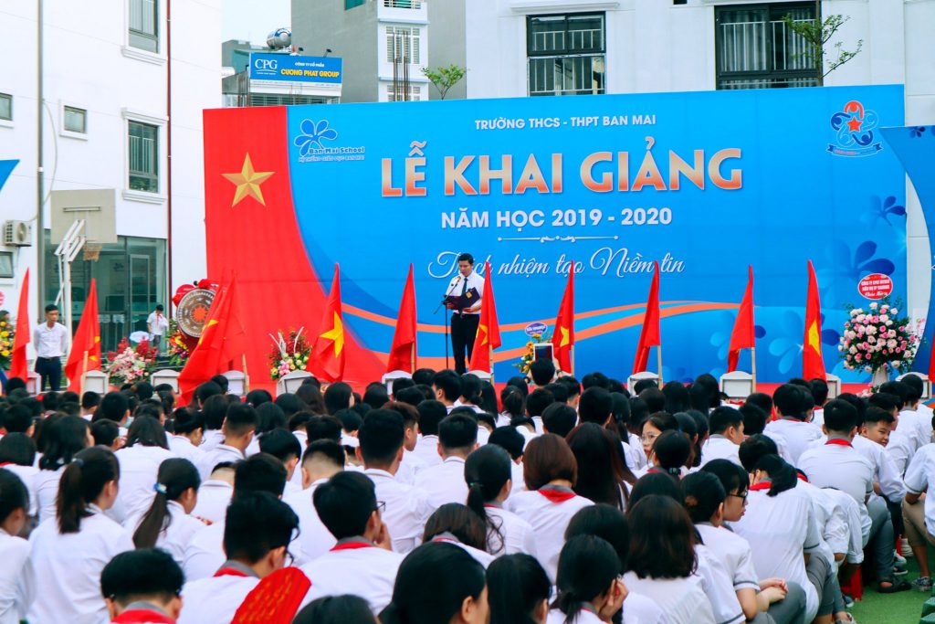Sáng ngày 5/9/2019, những chiếc khăn quàng đỏ tung bay trong gió, những chiếc huy hiện Đoàn đĩnh đạc, tự hào ghim trên ngực áo, và tiếng trống trường rộn rã báo hiệu một năm học mới bắt đầu. Mùa thu – mùa khai trường đã thực sự trở thành mùa xây những ước mơ. Thầy và trò trường THCS – THPT Ban Mai chính thức chào đón năm học mới với chủ đề “ Trách Nhiệm tạo Niềm Tin”