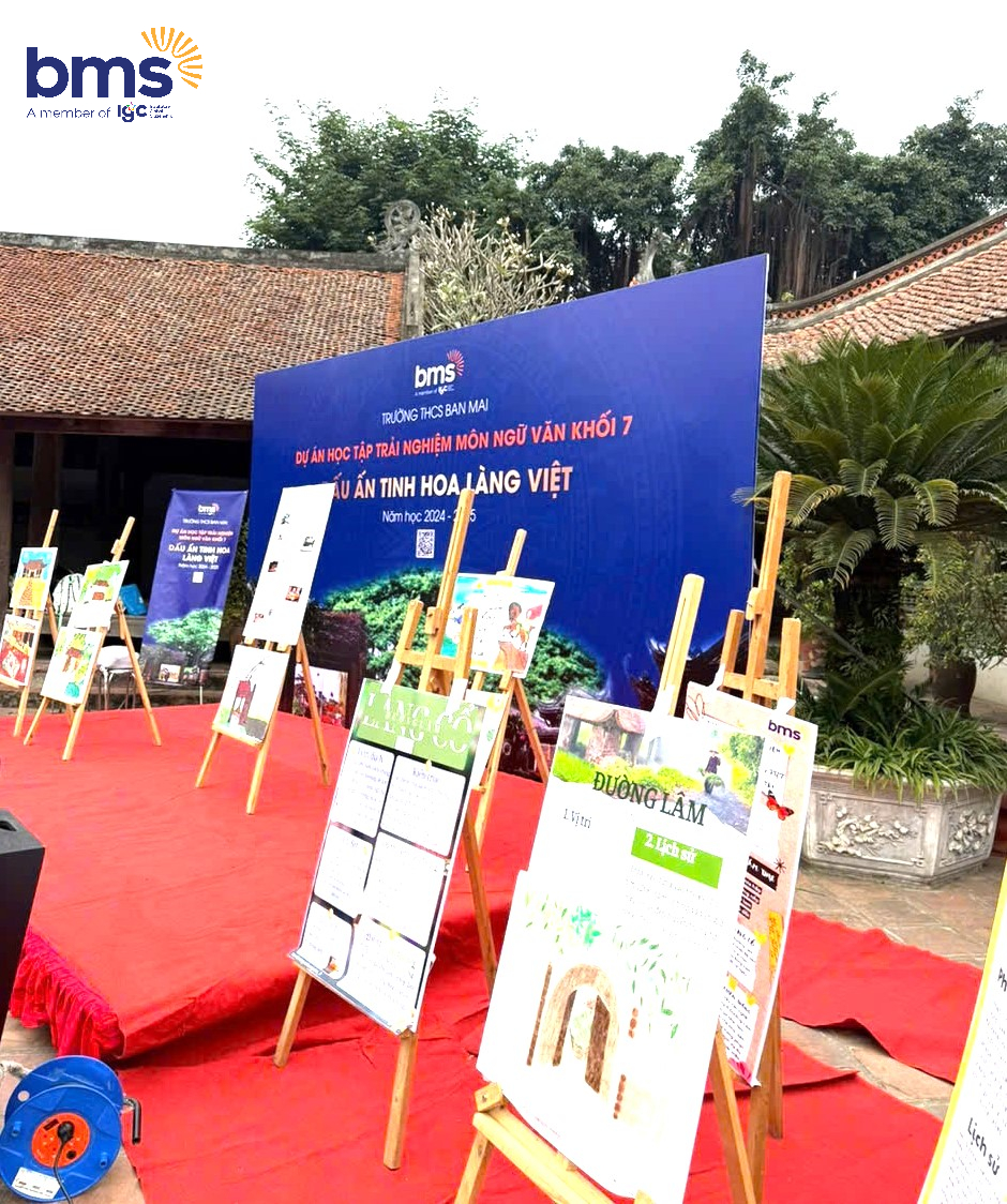 Dự án học tập trải nghiệm môn Ngữ văn “Dấu ấn tinh hoa làng Việt” giúp các bạn phát triển kĩ năng tư duy và sáng tạo, kết nối văn hoá với văn học cùng những trải nghiệm thực tế đáng nhớ. Đây là cơ hội để các BMS khối 7 được kết nối cùng với nhau, được trưởng thành và sáng tạo, cùng nhau lưu giữ những kỉ niệm đẹp cùng không gian văn hoá làng Việt cổ.