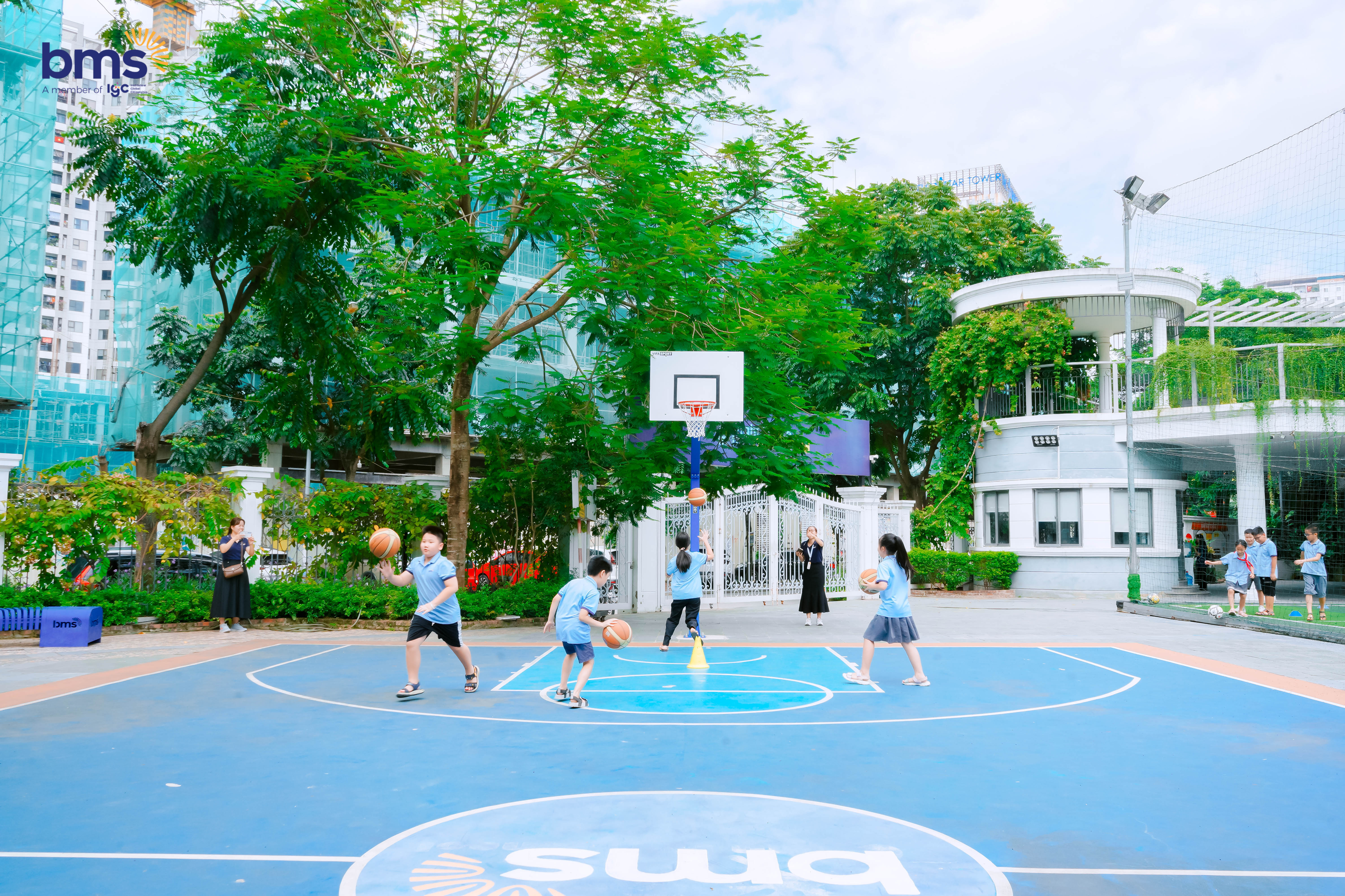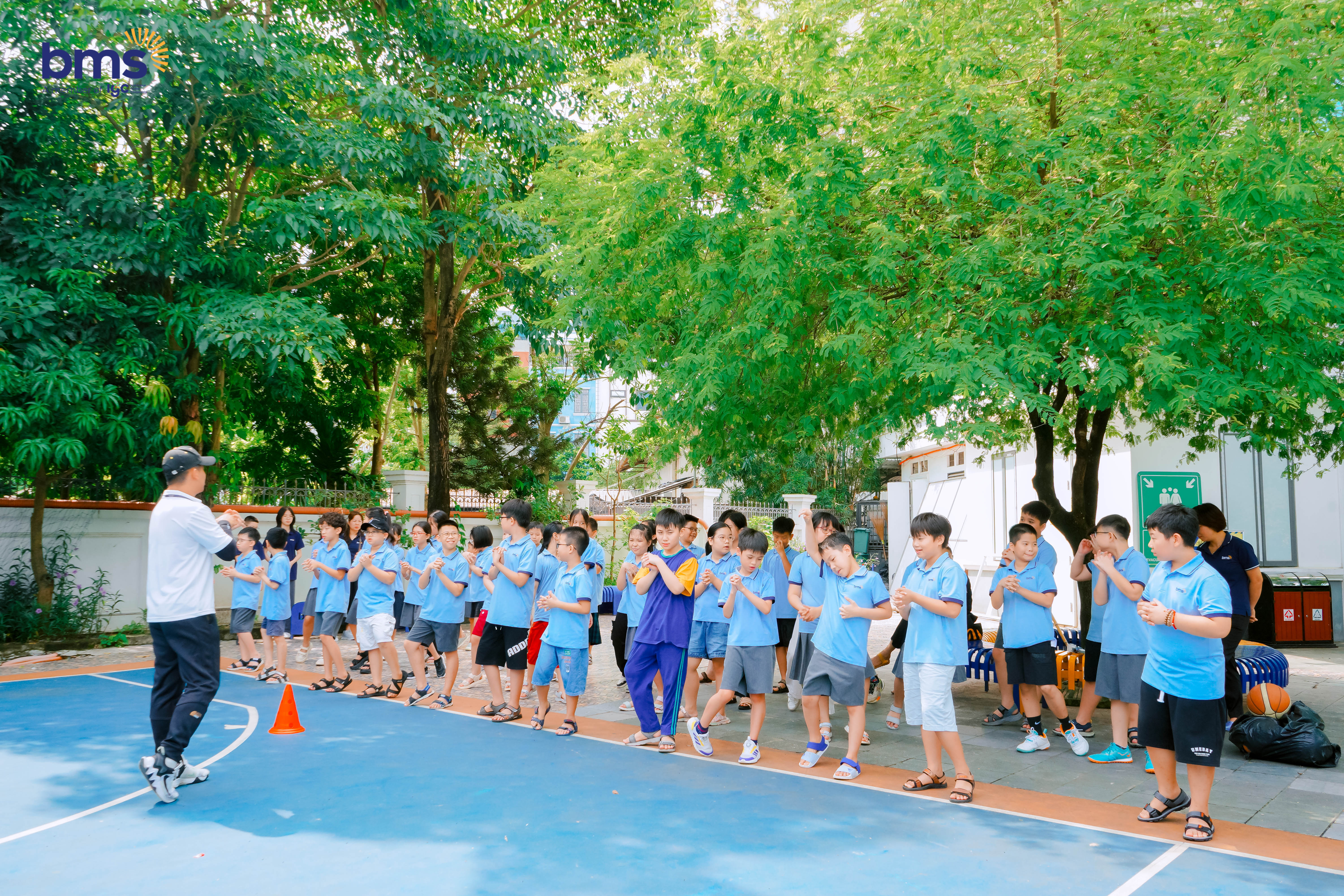 Ngay sau đó, các bạn ra sân tập luyện thể chất với bộ môn bóng đá và bóng rổ. Dưới sự hướng dẫn tận tình của giáo viên, BMSers khối 5 đã thử sức, phối hợp ăn ý trong từng pha di chuyển và cổ vũ nhau hết mình. Tiếng reo hò, những bước chạy nhanh nhẹn và nụ cười rạng rỡ lan tỏa khắp sân trường khiến buổi trải nghiệm càng thêm sôi động và hào hứng.