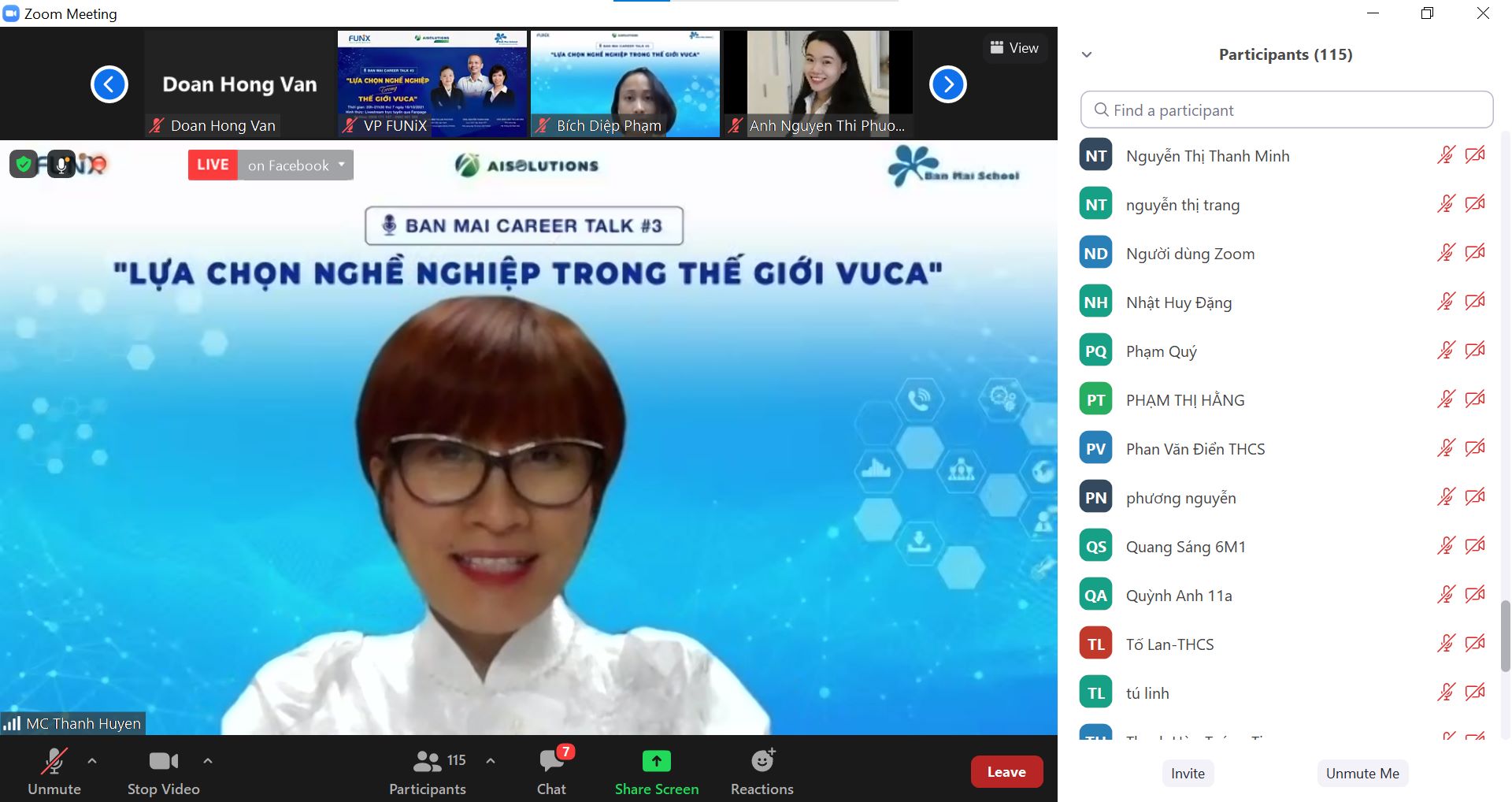 Ngày 16/10 vừa qua, Trường THCS – THPT Ban Mai phối hợp với Tổ chức giáo dục trực tuyến FUNiX tổ chức chương trình BAN MAI CAREER TALK #3 – “LỰA CHỌN NGHỀ NGHIỆP TRONG THẾ GIỚI VUCA”.