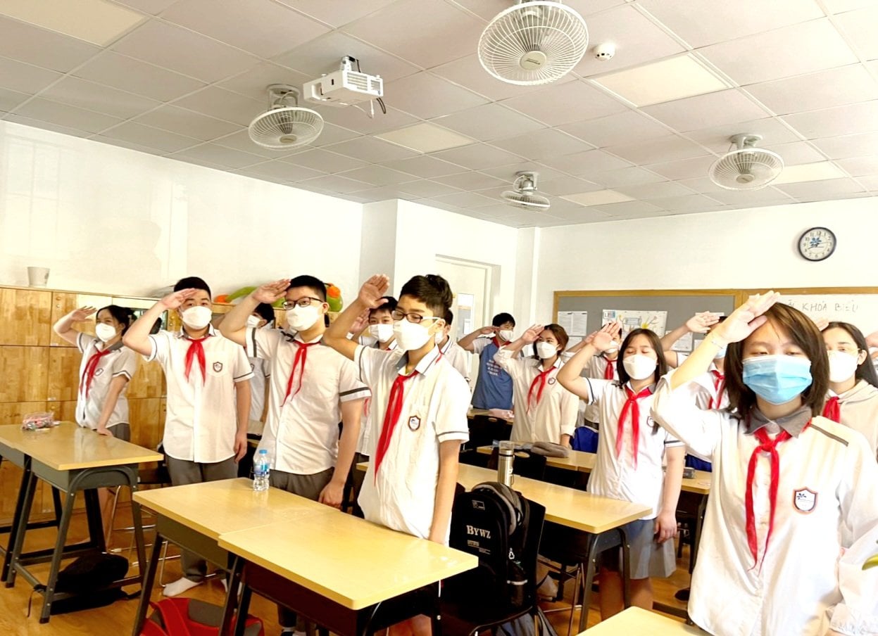 Gia đình học sinh Cường Thịnh 9M1 chia sẻ: ” Khi được Nhà trường thông báo về việc học sinh trở lại trường học, gia đình rất vui mừng, háo hức như tâm trạng ngày ngày đưa con đến tựu trường năm học mới. Con đã dậy rất sớm, chuẩn bị sách vở và tự đạp xe đến trường”.