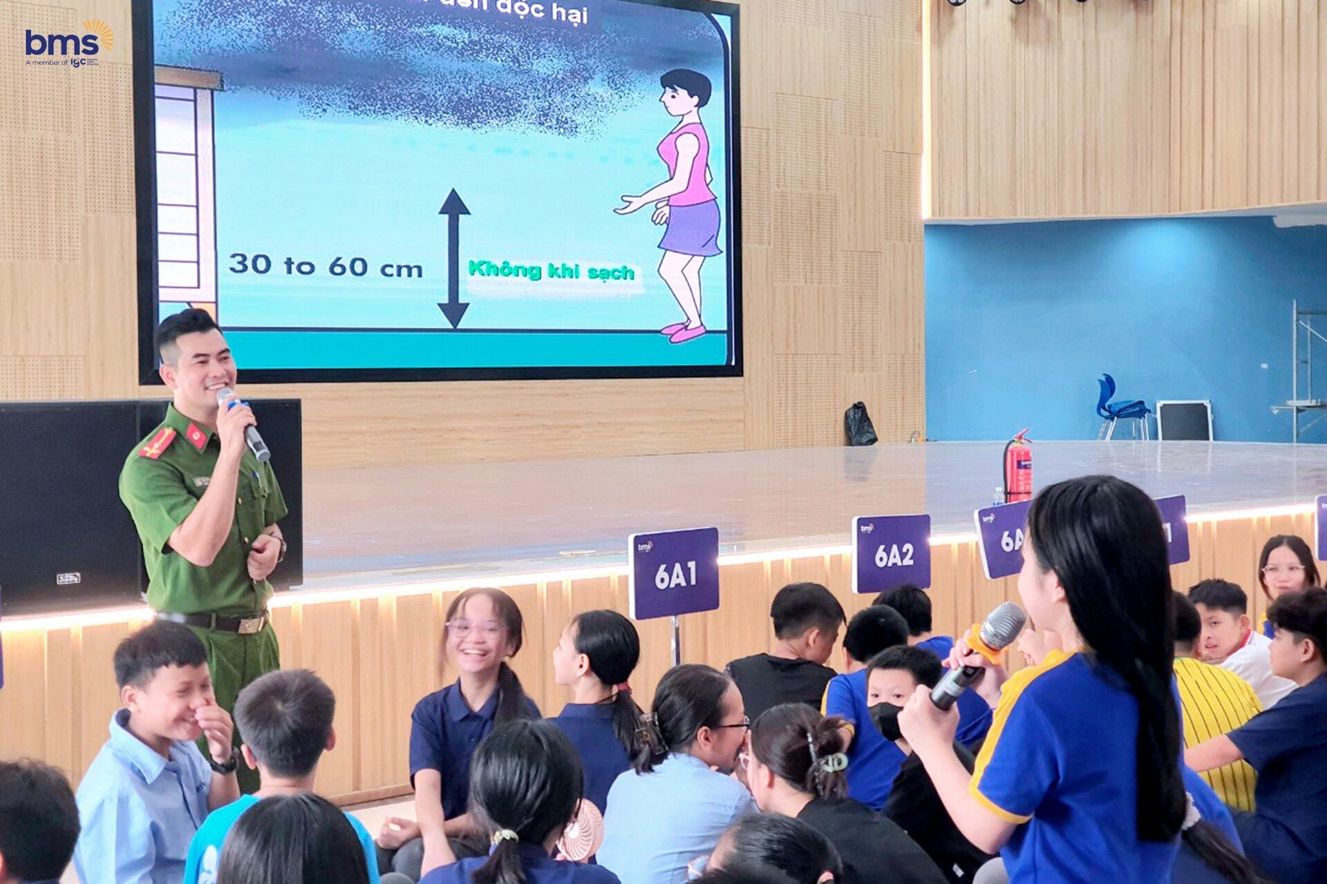 Buổi tập huấn là cơ hội để tất cả giáo viên và học sinh toàn trường nhận thức về nguy cơ của cháy và ý thức về việc duy trì môi trường an toàn chống cháy tại trường học. Đồng thời, đào tạo cán bộ giáo viên và học sinh cách sử dụng thiết bị phòng cháy chữa cháy cơ bản, cách cư xử trong trường hợp cháy, và cách tổ chức sơ tán an toàn. Đặc biệt, giáo viên – nhân viên Nhà trường được thực hành kỹ năng cứu nạn, cứu hộ, dập tắt đám cháy khi có đám cháy xảy ra trong trường học, gia đình.