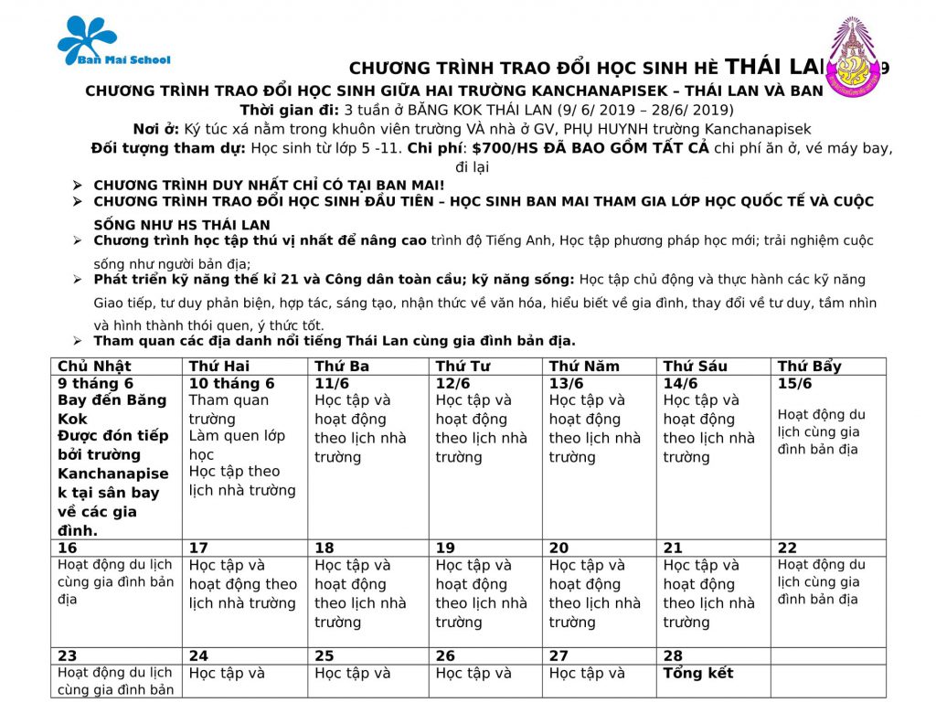 ✔️ THAILAND: Trao đổi học sinh giữa 2 trường – (chi tiết chương trình TẠI ĐÂY)