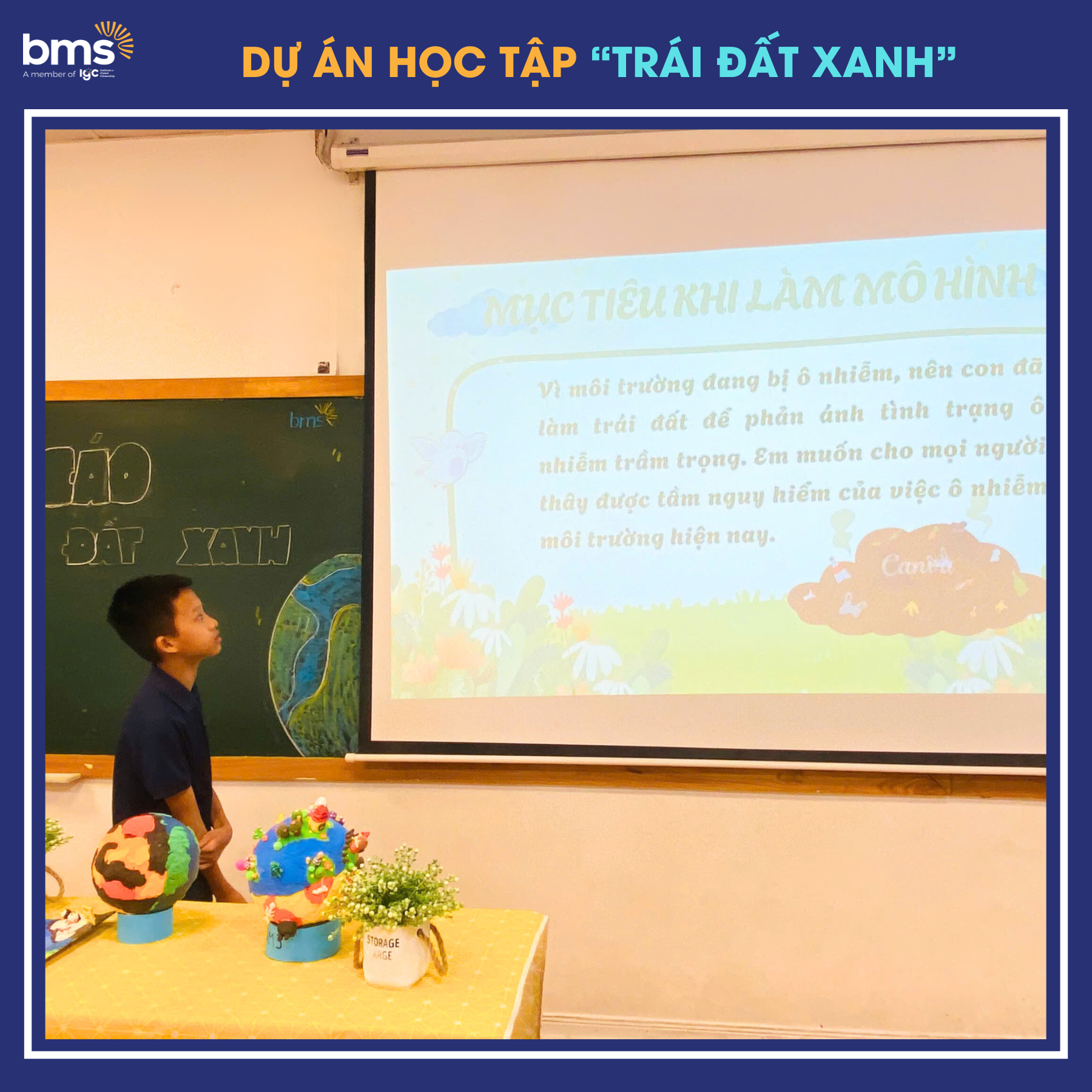Qua những sản phẩm thủ công ngộ nghĩnh, những dòng chữ giản dị mà sâu sắc, các bạn học sinh BMS đã góp tiếng nói nhỏ bé nhưng đầy sức mạnh vào câu chuyện chung của thế giới: dù còn nhỏ tuổi, chúng ta vẫn có thể cùng nhau tạo nên những hành động xanh để hướng tới một tương lai sáng, cho chính mình và cho hành tinh xanh tươi mãi mãi.
