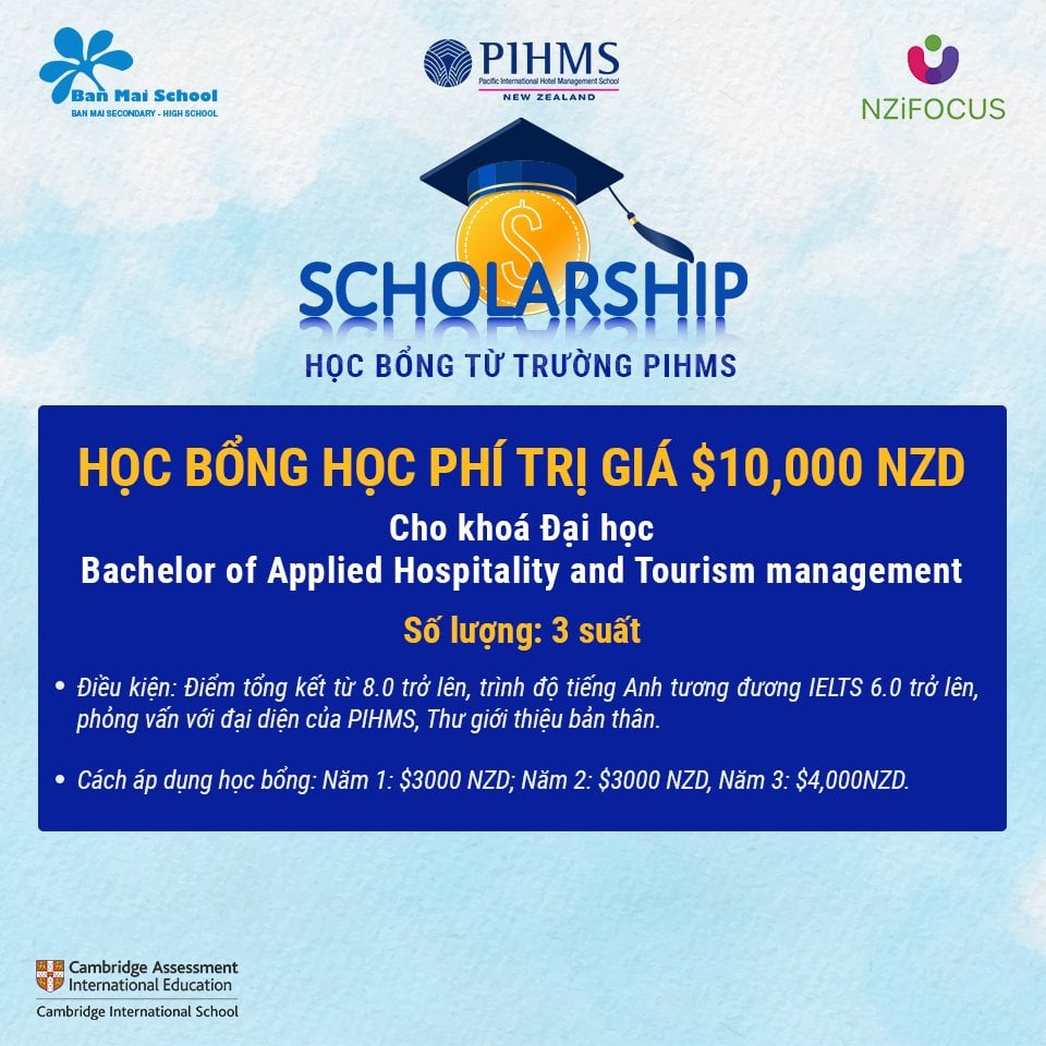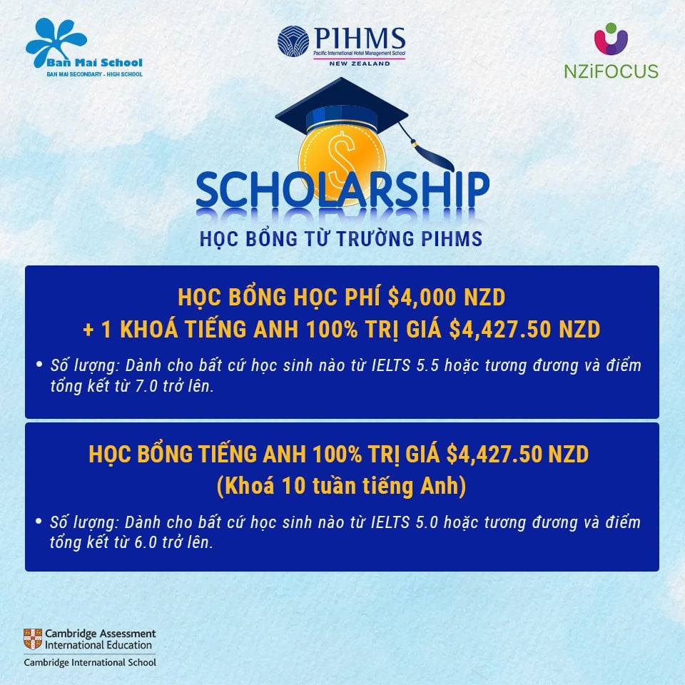 Chương trình NZSB | NZ SCHOLARSHIP Bootcamp do NZiFOCUS thực hiện cùng với sự tham gia của các trường đối tác tại New Zealand xin trân trọng trao tặng các suất học bổng đặc biệt New Zealand như sau cho học sinh trường Ban Mai cho năm học 2022.