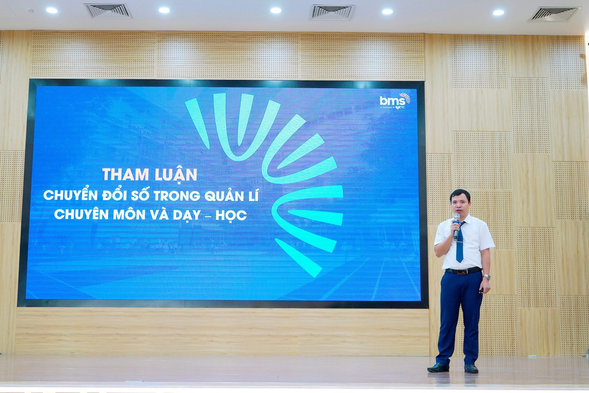 Thầy Nguyễn Đức Thắng – Tổ trưởng Tổ Toán – Tin chia sẻ tham luận “Chuyển đổi số trong quản lí chuyên môn và dạy – học”